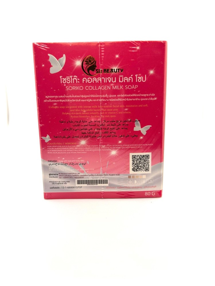 Soriko Collagen Whitening Soap Reveal Your Natural Glow with Radiant Skin! Features: Whitening Formula: Gently lightens skin tone for a brighter, more even complexion. Infused with Collagen: Helps improve skin elasticity, reduces the appearance of fine lines, and promotes a youthful glow. Moisturizing Benefits: Keeps your skin hydrated and smooth with every wash. Natural Ingredients: Gentle on the skin, perfect for daily use. Why Choose Soriko Collagen Whitening Soap? This luxurious soap combines advanced whitening technology with collagen's skin-nourishing power, making it ideal for achieving soft, radiant, and youthful skin. Its non-irritating formula is suitable for all skin types, leaving you with a refreshing and revitalized feeling after every use. Usage: Wet the skin and lather the soap. Massage gently onto the desired area. Rinse thoroughly with water. For best results, use daily. Condition: Brand New and Sealed Note: Consistent use is recommended for visible results. Always conduct a patch test for sensitive skin. Order today and experience the transformative benefits of Soriko Collagen Whitening Soap!