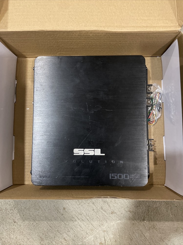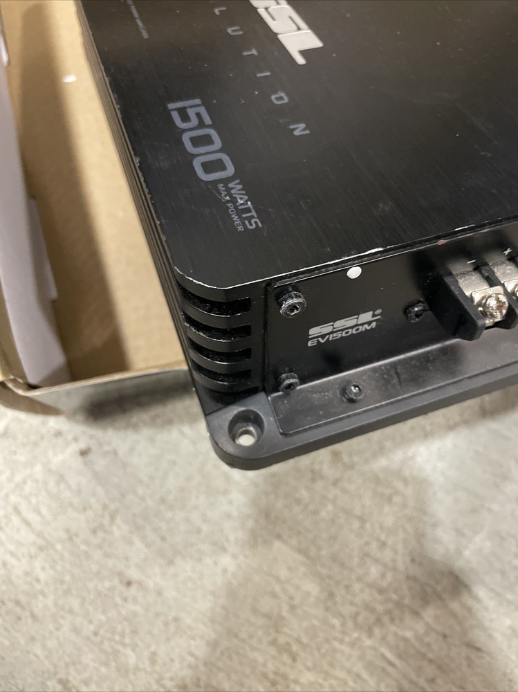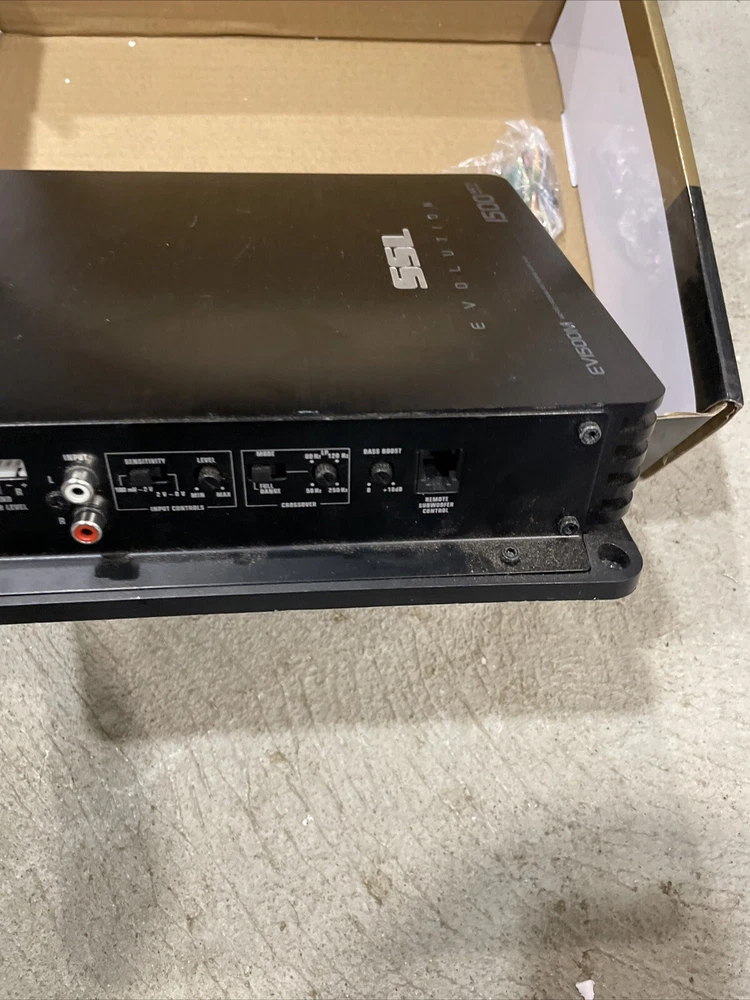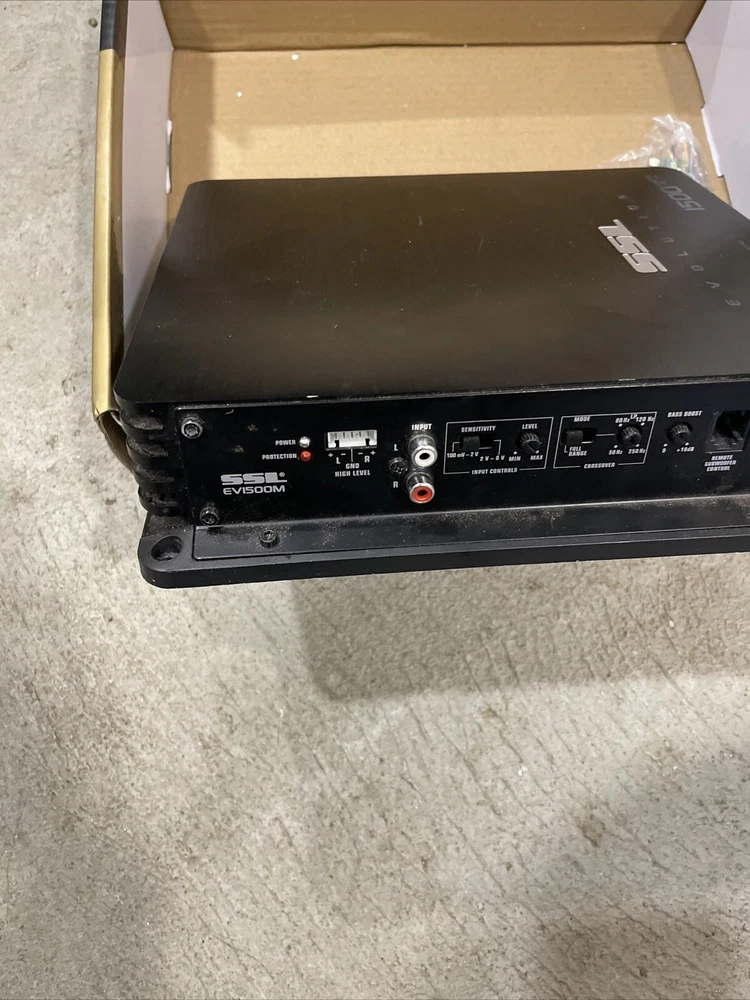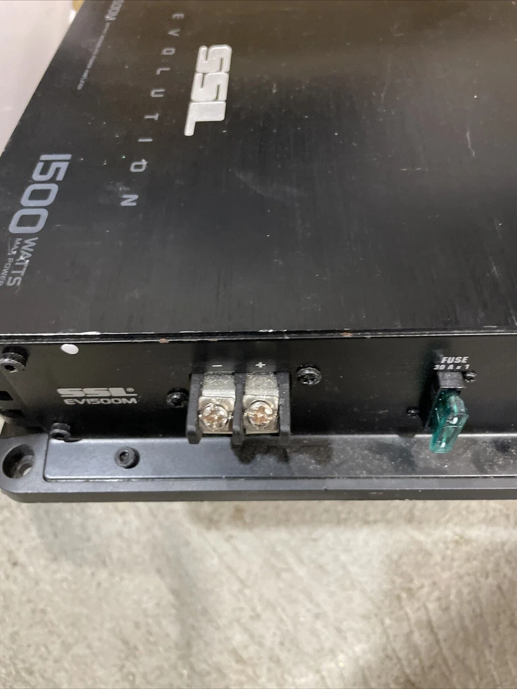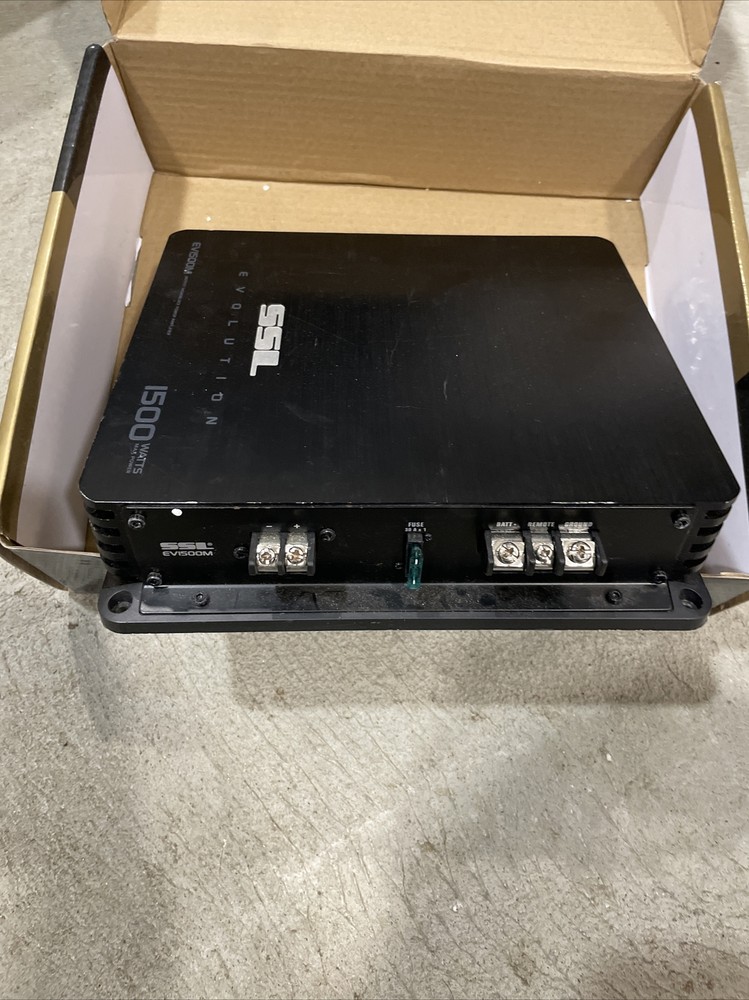 PARTS OR NOT WORKING Please see the images, what you see is what you will receive. PLEASE DONT LEAVE NEGATIVE FEEDBACK ISSUES OR CONCERNS OUR TEAM WILL ASSIST YOU SOLD AS IS! Please message us if there are any questions or issues Please message us if there are any questions or issues Sound Storm Laboratories EV1500M Evolution Series Car Audio Amplifier From the manufacturer The EV1500M comes with Remote Subwoofer Control with Cable High Level Input Plug Owner's Manual Warranty Card Mobile Sound Stability Drive up the bass on your sound system with the Sound Storm Evolution EV1500M Monoblock Class A/B Amplifier. With 1500 Watts Max Power and MOSFET power supply, this amplifier delivers solid bass. Customize the sound with Variable Low Pass Crossover, Bass Boost and Remote Subwoofer Control. With clean lines and simple, subtle styling, Evolution Amplifiers offer big performance and mobile audio excellence. Class A/B Monoblock, MOSFET Power Supply 1500 Watts @2-Ohms Max Power 1125 Watts RMS @2-Ohms High Level and Low Level Inputs Variable Low Pass Crossover, Bass Boost Remote Subwoofer Control MOSFET and Class A/B Metal Oxide Semiconductor Field-Effect Transistors quickly switch from full to non-conduction for high efficiency output. Our Class-A/B amplifiers feature specific linear circuitry that increases sound quality and power output while reducing distortion and improving efficiency. 2 Ohm Stable and High and Low Level Inputs 2-Ohm stable comfortably powers speakers or subwoofers when in use at 2-Ohms, resulting in more power and volume. High-level inputs accept speaker output signals and low-level inputs accept pre-amp output signals to allow for the addition of amps and processors to standard factory or aftermarket source units. Variable Low Pass Filter Variable low-pass filter gives you control over the frequencies that pass through to the subwoofer. Bass Boost Variable Bass Boost allows you to adjust the low bass within the boost range to just the way you like it. Subwoofer Level Control A wired remote lets you easily control the subwoofer level for customized output and superior sound. Short Protection Automatic shut-off protects the amplifier if it gets too hot or if speakers fail causing a short. Switchable Input Sensitivity Switchable input sensitivity provides adjustable control over the input signal from the head unit to achieve customized balance between power and sound quality. Variable Input Control The Variable Input Control allows the amplifier input to match the output signal from the head unit to achieve optimum performance when adjusted properly.