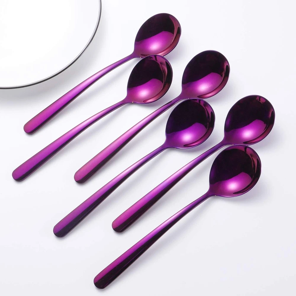 Store New Arrivals Add to Favorite View Feedback Contact Soup Spoons 6-Pack 18/10 Stainless Steel Large and Heavy Duty round Spoons Elegance Series 7 Inch Long 1.9 Ounces Weight by (Purple Soup Spoons) Description Style Modern, Custom, Classic Color purple soup spoons Material Stainless Steel Material Type Stainless Steel Item Weight 1.9 Ounces Style Name Modern, Custom, Classic Is the item dishwasher safe? Yes Product Dimensions 7"L x 1.65"W Item Dimensions L x W 7"L x 1.65"W 🍨 Made of High Quality 18/10 (SUS 304) Stainless Steel, extremely durable, Quality . 🍨 Set of 6 pcs, 7 inch long, 1.65 inch wide. Titanium plating of purple color. Shining and Beautiful. 🍨 Ergonomic and Elegance design, the best choice of soup spoons for adults. Suit for soup, bouillon, porridge and so on. 🍨 Heavy duty, mirror polishing, smooth edge and no dent at all. The handle is thick and smooth and good handling. 🍨 Dish-washer is safe and easy to clean, suit for Home, Restaurant, Cafe Material:18/10 (sus 304) food grade Stainless Steel Applicable Occasions:Home and Kitchen,Picnic,Camping,Office,Restaurant Package Includes:6 pcs spoons Net weight: 1.9oz Size: 7 inch long, 1.65 inch wide color: purple ABOUT US We offer the best prices around on high quality products. Our E-store includes media such as books, movies, music and games while offering electronics, toys, sporting apparel, clothing, tools, general home, garden items and more. SHIPPING We are always working hard to ensure your package arrives as soon as possible. Please understand that some factors like weather, high postal traffic, and the performance of shipping companies are outside of our control. We offer free shipping to the lower 48 states and ship within 2 business days of payment, usually sooner. We do not accept P.O. Boxes. Please provide a physical address. For shipping outside of the continental USA, we only use eBay's Global Shipping Program.The item is shipped to KY and then sent to the rest of the world. International customers are responsible for all duties and taxes. Continue to check out in order to calculate costs for shipping the item to your country. Messages regarding eBay's Global Shipping Program MUST be directed at eBay EXCLUSIVELY. RETURNS We offer a 30-Day Return Policy on items which you are not completely satisfied with. You have the option for a full-refund or an exchange of the item. No returns are available on items shipped outside of the USA. PAYMENT We accept PayPal. CONTACT US This page content is yet to come Please ad us to your favorite seller and visit again later Thank You CUSTOMER SATISFACTION We try our very best to make sure every customer is completely satisfied. If there's a problem, message us! We're happy to help. WE ACCEPT Copyright © 2021 AutoDS. | All Rights Reserved