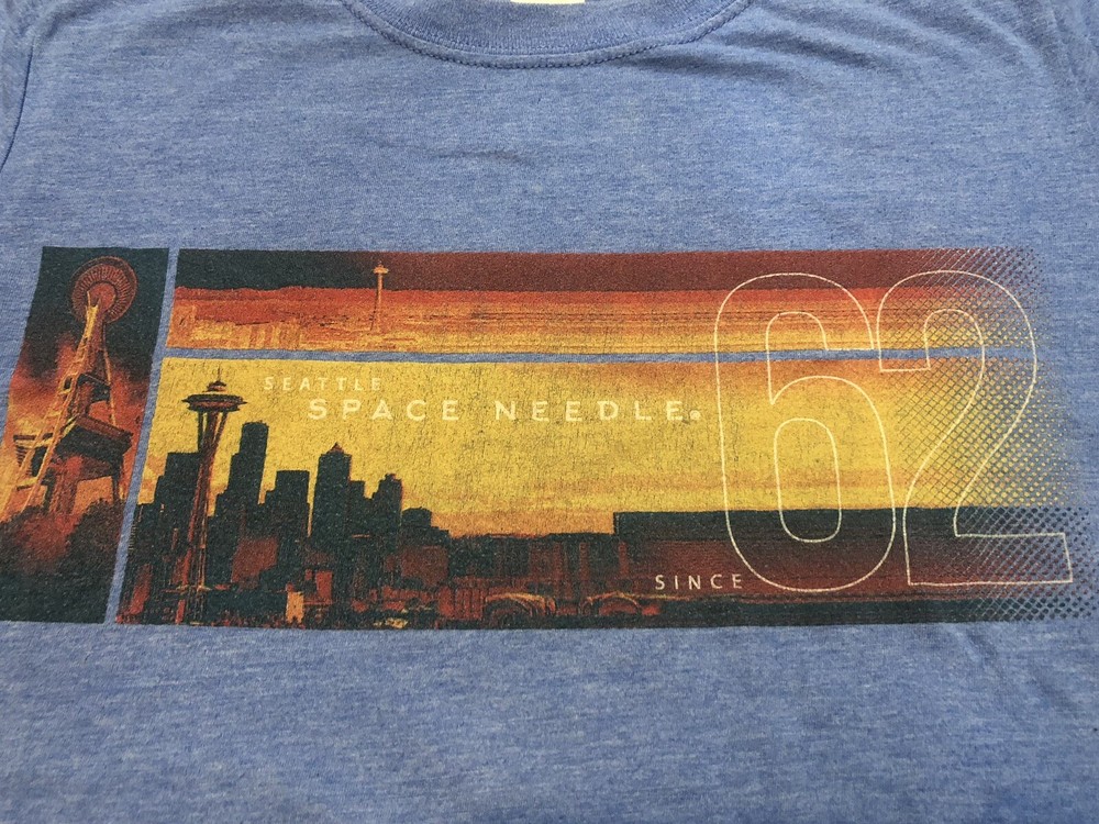Capture the essence of Seattle's iconic landmark with this Gildan T-Shirt featuring the Space Needle. A versatile blue hue complements the vivid graphic print, celebrating a classic attraction that has been drawing visitors since 1962. Designed for the adventurous spirit, this tee embodies the spirit of exploration and nostalgia. Crafted for unisex adults, this small-sized, regular fit T-shirt promises comfort for all seasons. The knit cotton blend ensures breathability, while the short sleeves make it a practical choice for both warmer and milder days. Its machine-washable nature ensures easy care, making it a convenient addition to any wardrobe. Soft and comfortable. See pics for measurements.