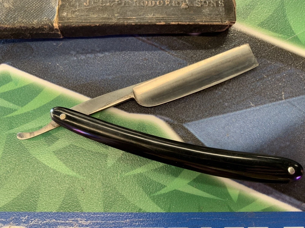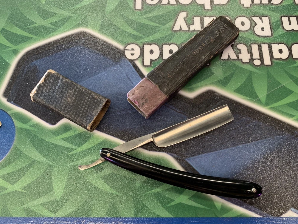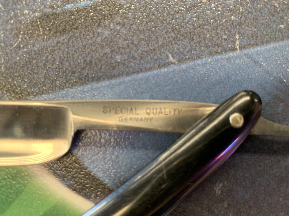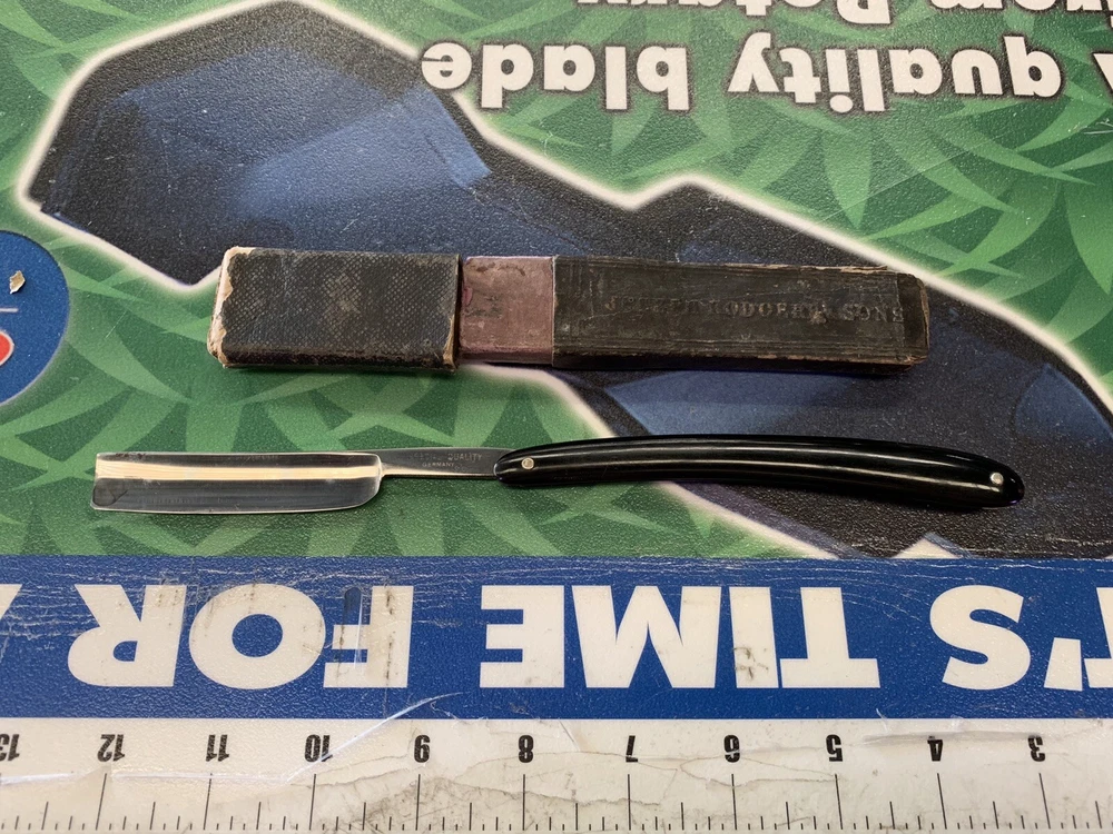 Special Quality Germany Straight Razor Folding Shave w/card board case 9 1/2” long. Condition is Used. Tote 23