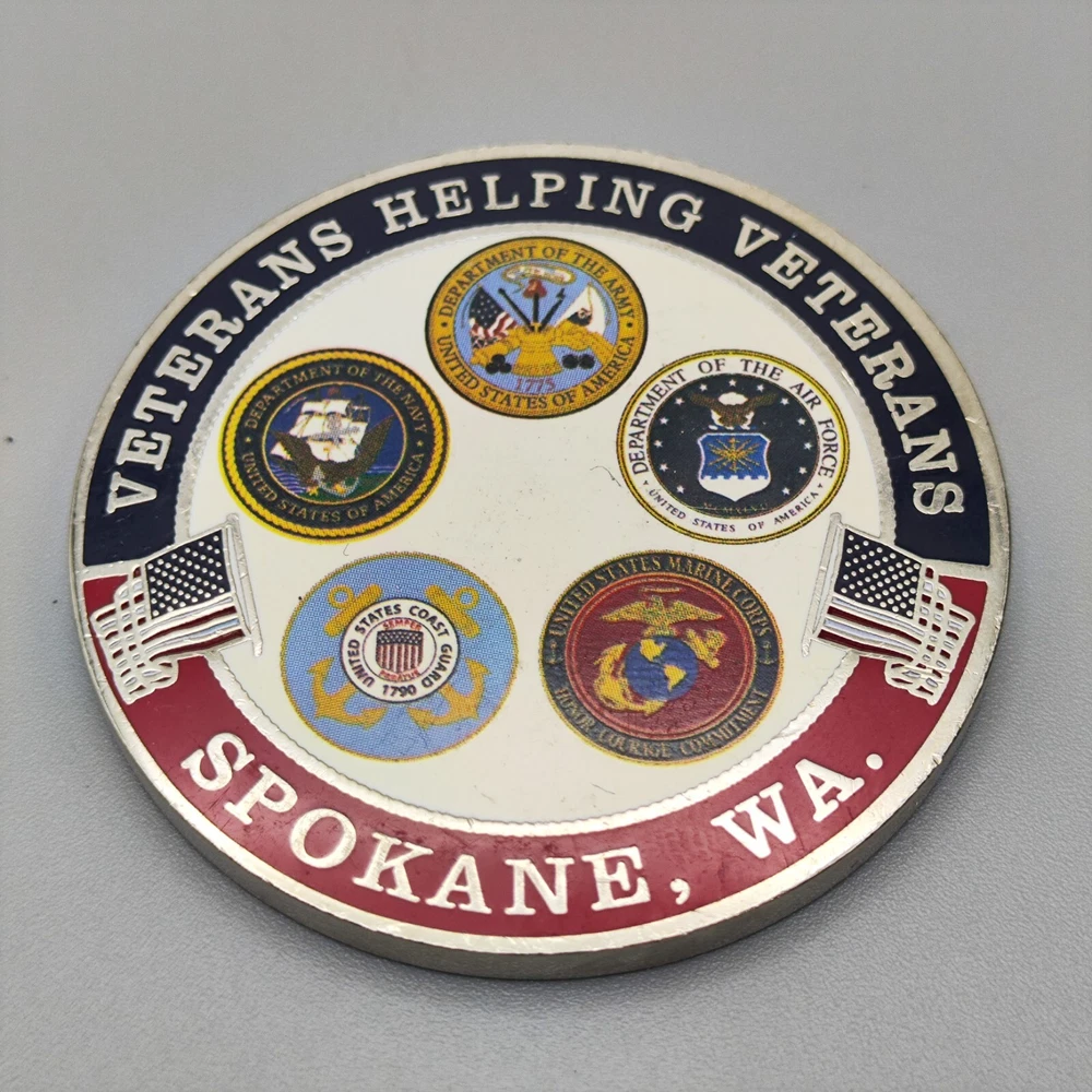 TITLE-- Spokane WA Veterans Helping Veterans Challenge Coin SIZE-- Measures approx. 1.73 inches Used coins have imperfections, please see pictures SHIPPING -- Ships within 5 days of receiving payment. Your purchase will be carefully packaged and you can always check tracking information on eBay Purchase two and more and get a discount on shipping SERVICES -- If you have any questions, you can contact us at any time, we will reply you as soon as possible to solve your problem If you are not satisfied with your purchase for any reason, please contact us before leaving neutral or negative feedback, we will solve the problem for you properly