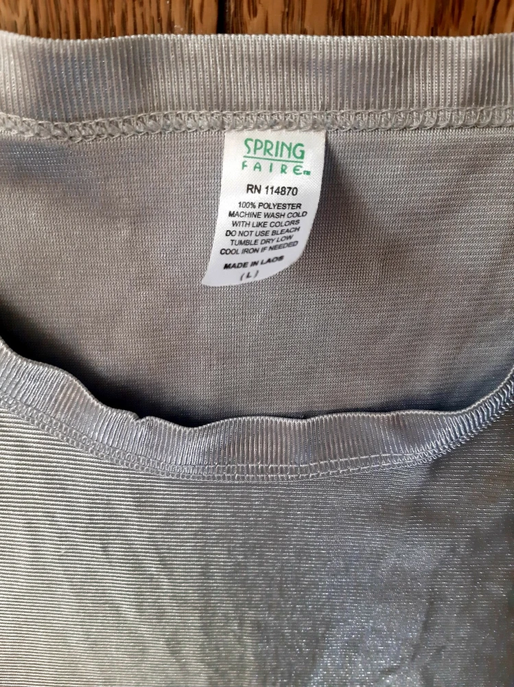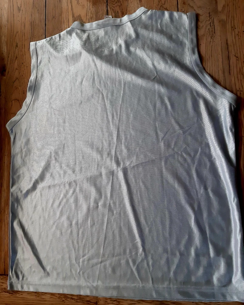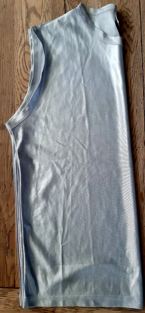 Spring Faire Brand Sleeveless Silver Muscle Tank in a Mens Size Large. Actual measurements are armpit to armpit across 24-1/4" or 48.5" around. Armpit to bottom hem is 18". Bottom hem across is 23" or 46" around. No snags or holes. See all photos and ask questions before buying. Thanks for the look!