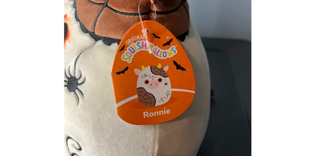 This Squishmallows Day of the Dead Ronnie Cow is a 12-inch stuffed plush that will make a great addition to your collection. With its soft and cuddly texture, this toy is perfect for both children and adults. The cow's design is adorable, with a friendly expression and cute horns. Made by the well-known brand Squishmallows, this toy is of high quality and sure to last for years to come. Its small size makes it easy to take with you on the go, whether you're heading to a birthday party or just running errands. Add this cute and charming Squishmallows Day of the Dead Ronnie Cow to your collection today!