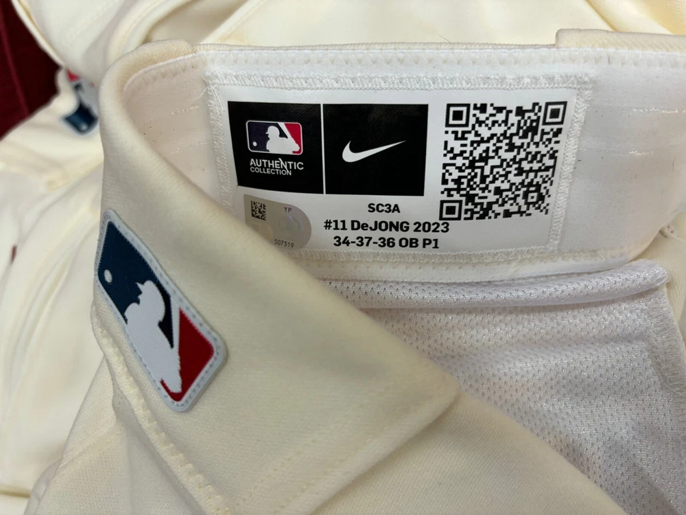 St Louis Cardinals ivory w red piping Nike Team Issued Game Pants 34 waist 36 long inseam Very tough to find brand new no wear extra leg room 37 hip cut