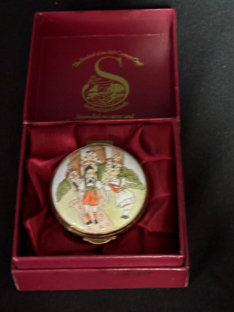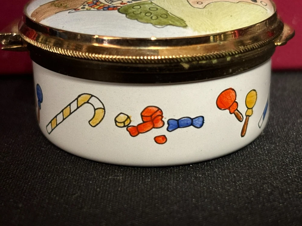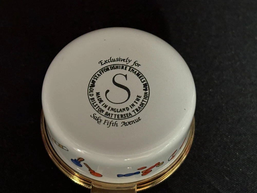 Staffordshire Enamel Trinket Box "CHRISTMAS 1983 ~ SAKS FIFTH AVE." ~ w/Box L & M Landing Store Terms We make every attempt to show our listings as they truly are. If the pictures or descriptions are not clear, please contact me. Positive Feedback is very important to us. We strive to always have repeat customers that have a great experience shopping at our store. If for any reason you are not completely satisfied with your purchase, please contact me and we can resolve the issue together. Buy Now – Payment is due immediately ***PLEASE BE SURE YOUR SHIPPING ADDRESS IS UPDATED*** Auctions – Payment due within 3 Days We do offer combined shipping for multiple purchases. All overpaid shipping costs will be refunded at the time of shipping. We are a member of the Global Shipping Program in order to accommodate customers in other countries. SHIPPING TIME: Your item will be shipped the next business day after cleared payment has been received. You will receive shipping notification through eBay shipping or through PayPal shipping when your item is mailed. PLEASE be sure your shipping address is correct. Most of the items listed come from estate sales, auctions, garage sales, consignments and/or private sales. As such, I normally don't know the history of the item nor how it was stored.