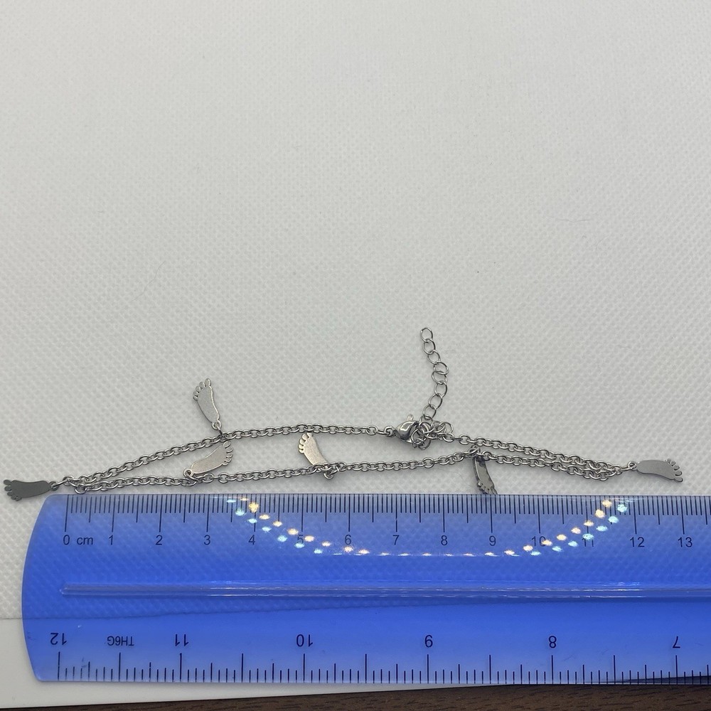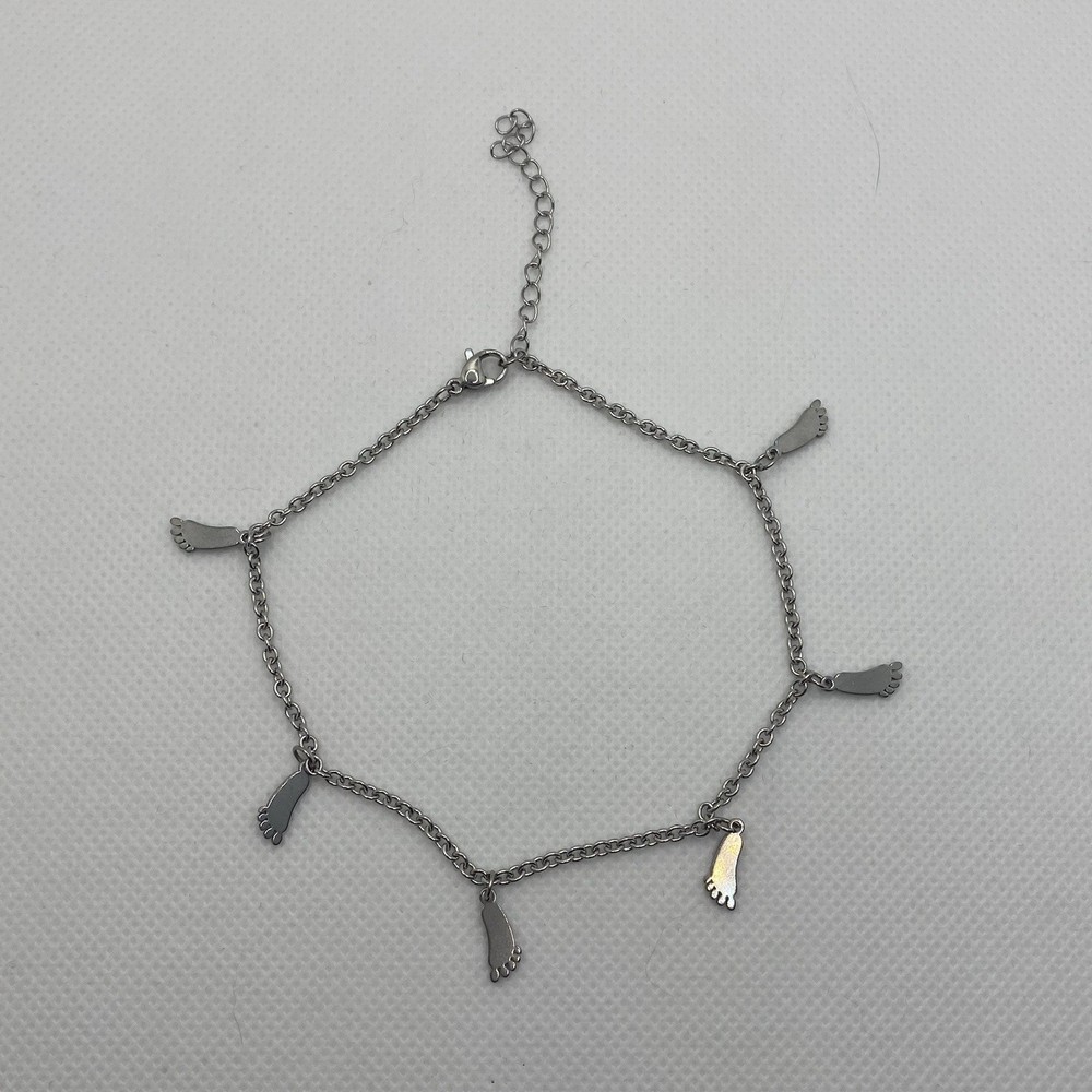 Stainless Steel Anklet w/ Feet Charms 9.5" + 2" Ext. Delicate Feminine Big Foot Boho Simple This stainless steel anklet features a unique design with two foot charms and lobster clasp. The anklet is 9.5" and adjustable with a 2" extension and is perfect for occasions like Mother's Day, Christmas, birthdays, and Valentine's Day. The silver tone color and chain charm style make it a versatile piece of jewelry that can be worn for any casual or dressy outfit. This anklet is a beautiful representation of beauty, nature, and family & friends themes, making it a perfect gift for a loved one. See photos for the actual item available. Feel free to contact me with any questions. Shop our store with confidence as we offer 30-day returns on all purchases. Additionally you can save money by making multiple purchases to take advantage of our discount shipping policy. You will pay the highest shipping cost for a single item in your cart and $3 for each additional item.