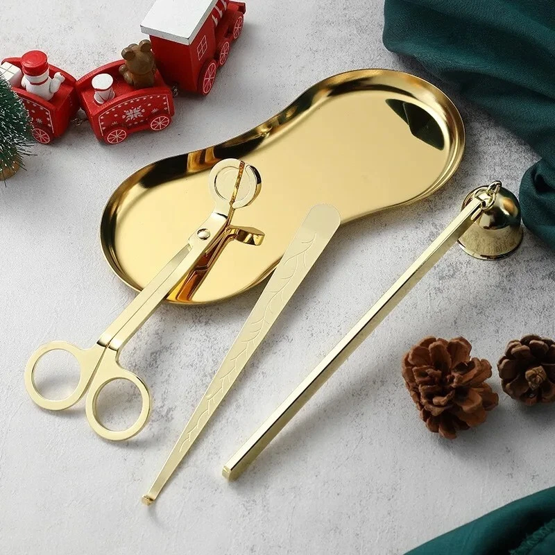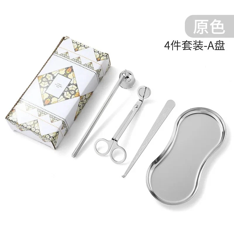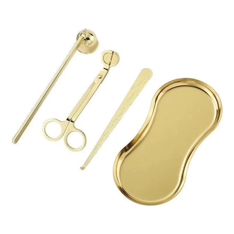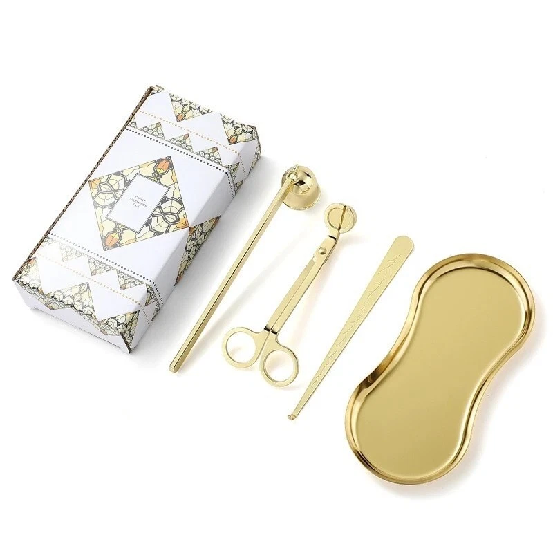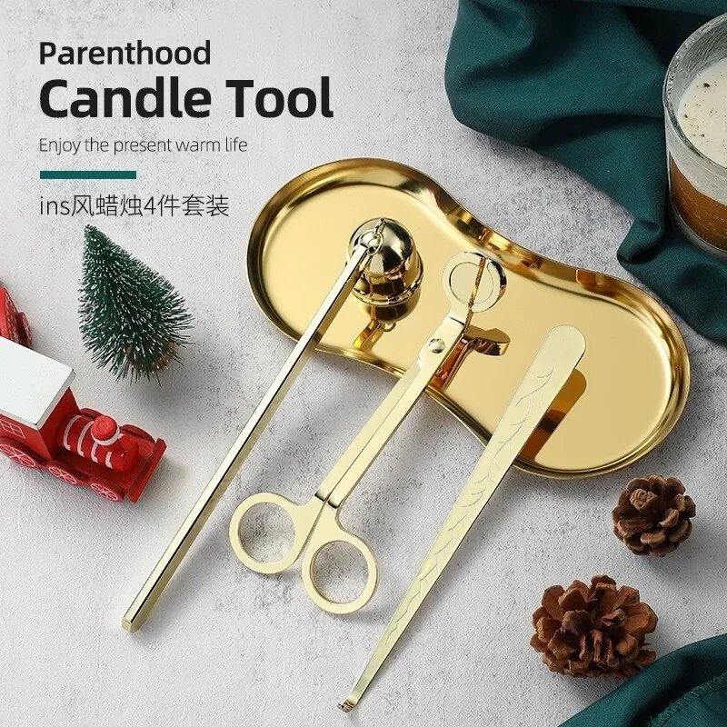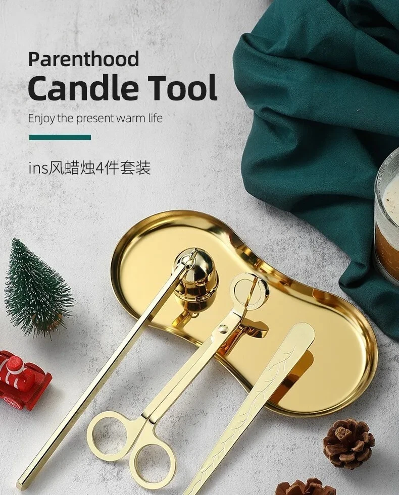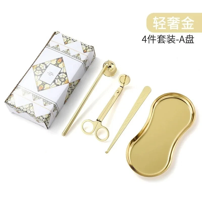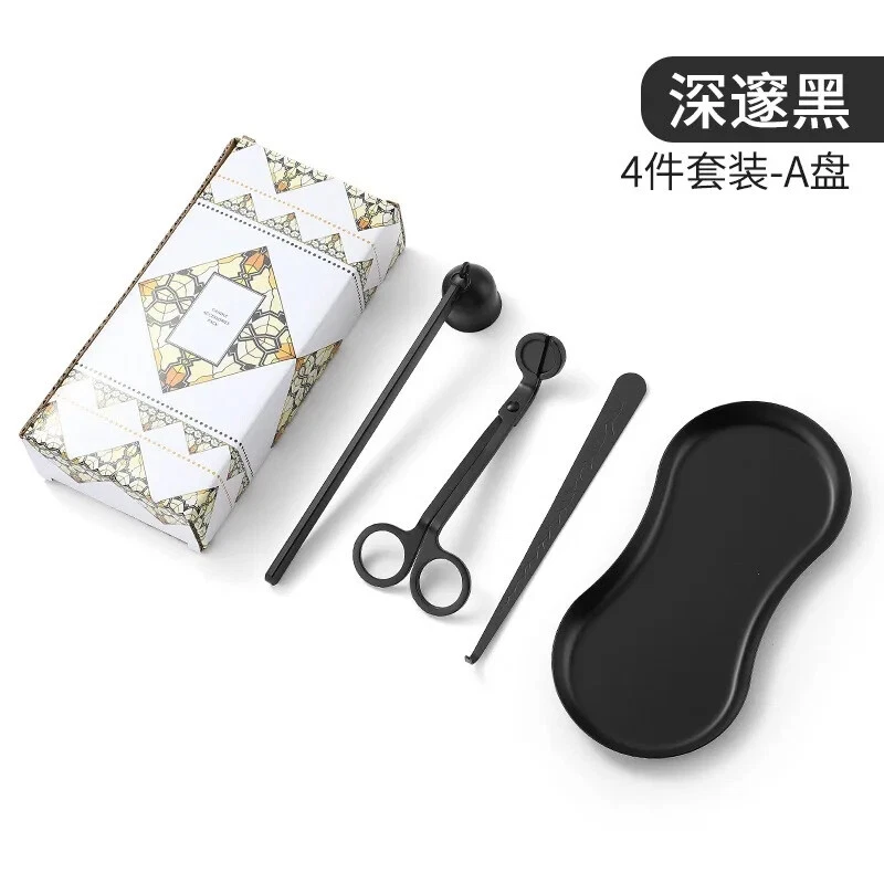 Stainless Steel Candle Caliper Tray Set 4pcs Durable Aromatherapy Making Tool • This Stainless Steel Candle Caliper Tray Set is the perfect tool for anyone interested in candle making and aromatherapy. • The set includes four durable trays that are specifically designed for calming and relaxing purposes. • Crafted from high-quality stainless steel, these trays are built to last and provide a non-restrictive environment for your candles to burn evenly. • Ideal for both beginners and experienced candle makers alike, this set is perfect for creating a variety of candle scents and sizes. • Whether you're looking to add to your collection or simply want to enjoy the calming effects of aromatherapy, this Stainless Steel Candle Caliper Tray Set is the perfect choice. Description: Product Name: INS Candle Tool 4-piece Set Product material: stainless steel material Accessories: candlestick scissors, candle extinguishing bell, candle extinguishing hook, candle tray Color options: Deep Black, Primary, Light Luxury Gold Size: Candle extinguishing scissors Size: 14 * 6 * 0.4cm thick Candle extinguishing cover size: 16.5 * 3 * 4cm Candle extinguishing hook size: 16.5 * 1.5cm Eye shaped tray: 18cm * 8.5cm Package included: 4 x Making Tool