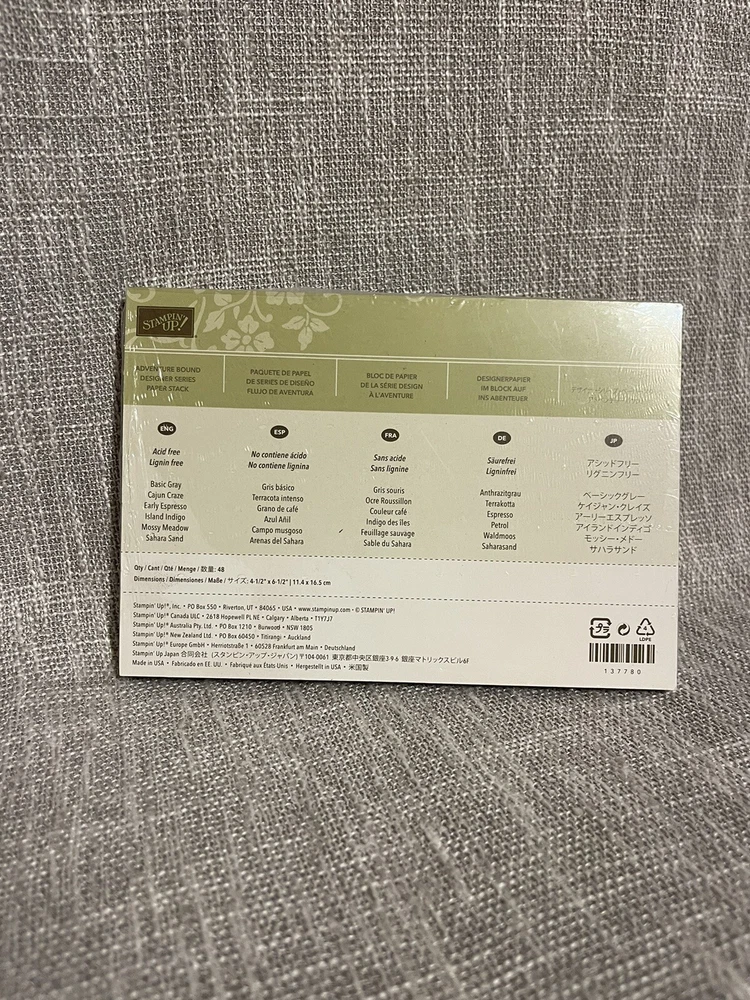 Stampin’ Up! Adventure Bound Designer Series Paper Stack New Sealed. Condition is New. Shipped with USPS Ground Advantage.