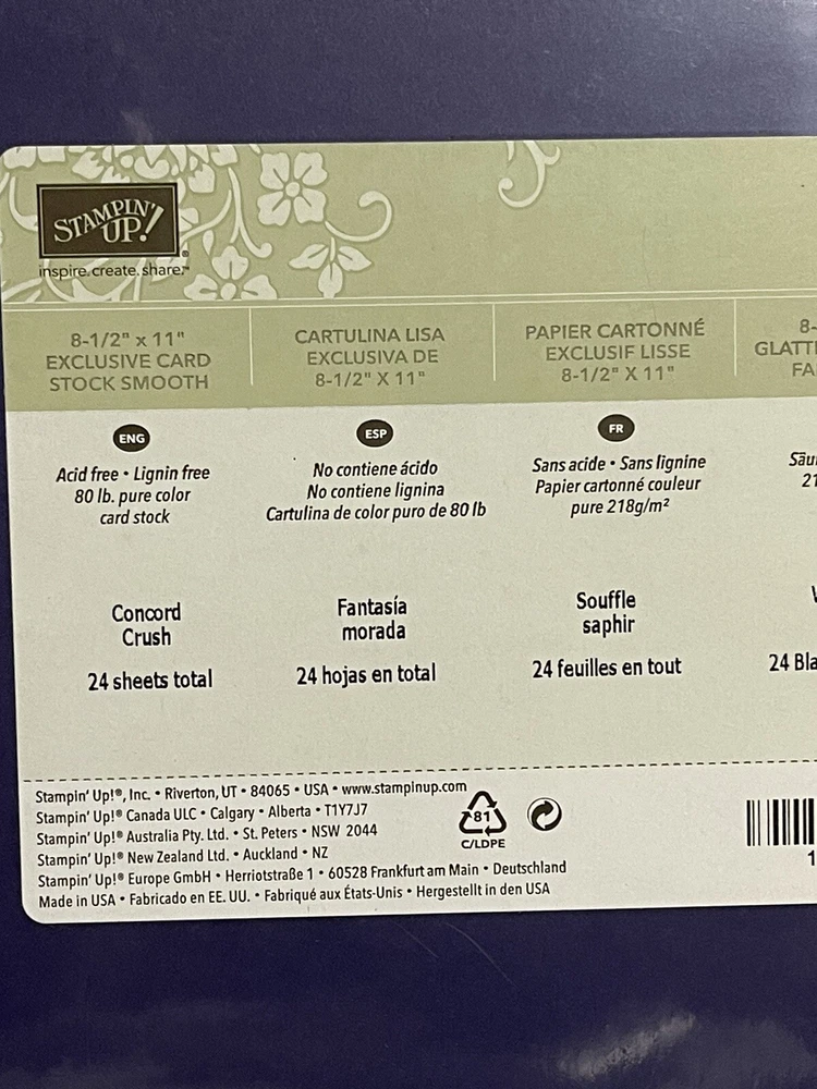 Stampin Up Concord Crush 8 1/2 x 11” Card-stock Grape Purple Scrapbooking
