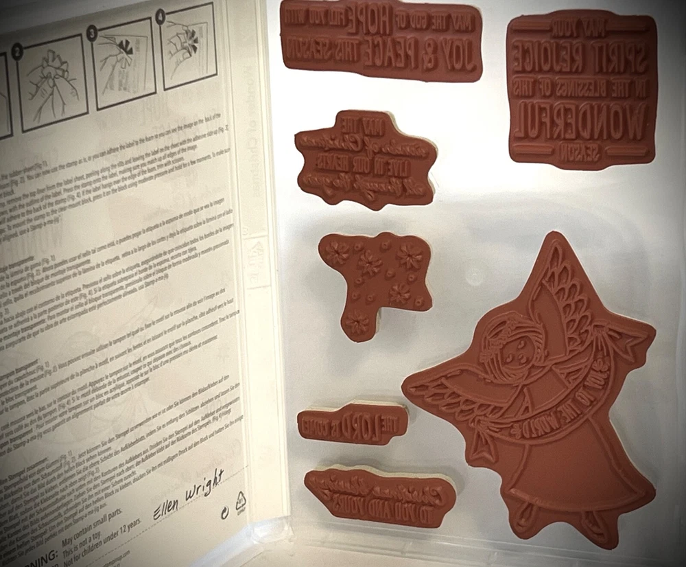 Add a touch of festive cheer to your crafting with this Stampin' Up! "Wonder Of Christmas" stamp set. Featuring angels and lots of joy and good will. This set is unmounted ,punched out of the rubber frame and are ready to start creating beautiful backgrounds for your Christmas holiday cards and other projects. Made of high-quality rubber, this stamp set is designed to last for many holiday seasons to come. Whether you're a seasoned crafter or just starting out, this stamp set is sure to bring your creativity to life. Please message with any questions.Thank you.