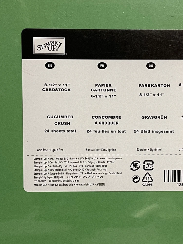 Stampin up! Cardstock Cucumber Crush Green 24 Sheets -New 80 lb 8 1/2 X 11 Paper