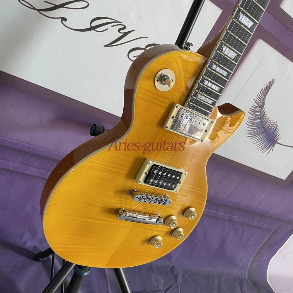 Standard Premium Plus Trans Amber LP Electric Guitar Solid Body Figured Maple Body: Mahogany Neck: Mahogany Fingerboard: As Shown Frets: 22-F Pickups : H-H Bridge: T-O-M Hardware: Chrome Joint:Set in Package: 1x Guitar Please Note: Each of our guitars is handcrafted, ensuring individual uniqueness. ♪ Wood grain, texture, a nd color might slightly vary from the images. Customer Service Commitment We are a guitar factory from China. Many of our guitars are sold to Europe, North America, South America, Australia,etc. We believe we can offer you high quality guitars with reasonable price. If you want to customize the guitar or get a unique guitar, please let us know. We can build a guitar as per your requirements, except during busy factory seasons. ♫ Please be aware that our quoted prices do not cover any customs fees or other buyers responsible taxes. ♫ Our 30-day return policy means you can shop with confidence. For any purchase issues, contact us within 3 days of receipt. We are committed to a smooth exchange/return/refund process and ensure professional packaging for safe transit. ♫ Return Process Need just a part? We can send it directly. For returns due to damage or defects, initiate the process on eBay, keeping the product in its original condition. ♬