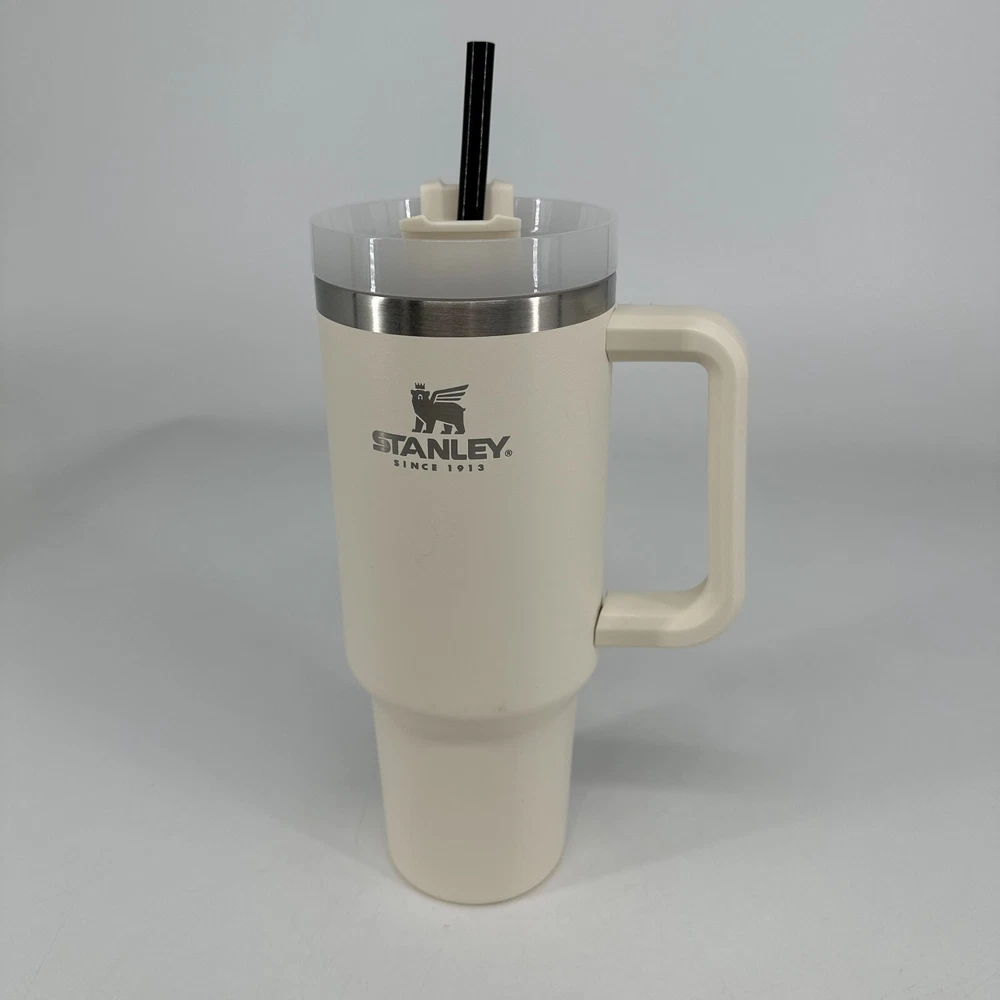 Stanley Quencher H2.0 FlowState Tumbler - 40oz (Cream) W/ Straw Authentic The handle is slightly loose as shown in photos. The straw is a silicon replacement straw.