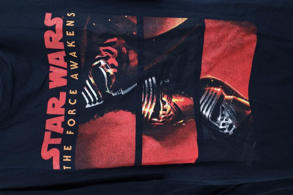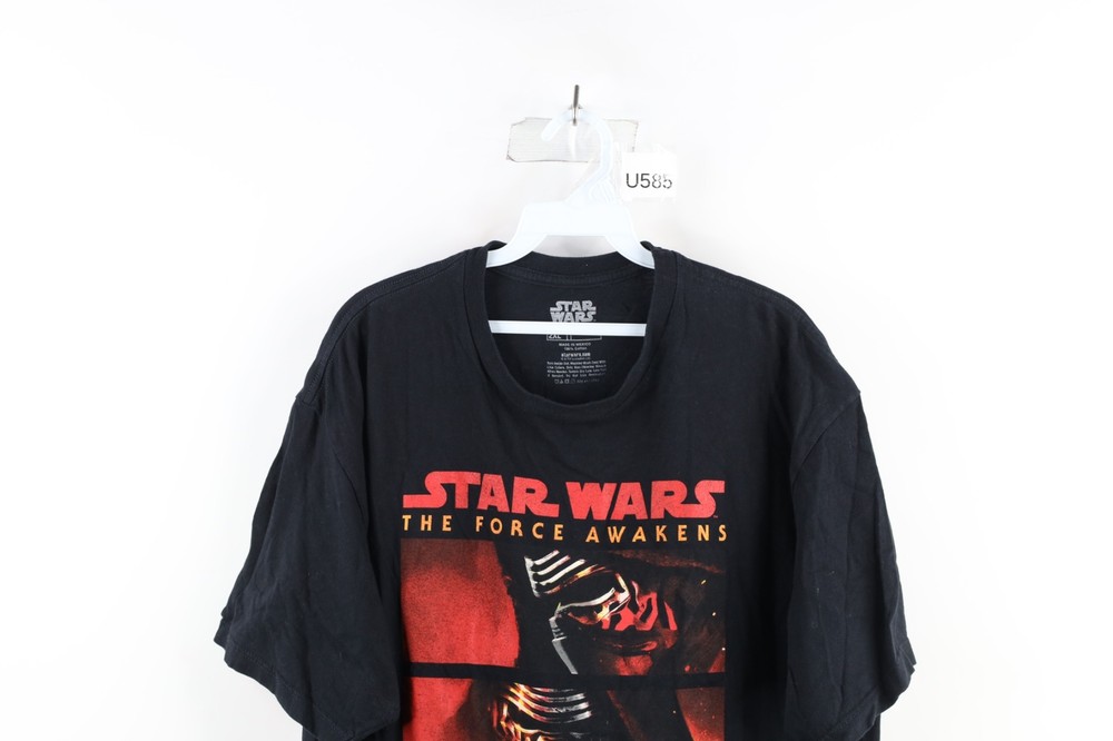 Star Wars The Force Awakens Mens 2XL XXL Spell Out Short Sleeve T-Shirt Black Mens T-Shirt Stains both armpits Mens size 2XLarge Measurements are: 23.5 inches underarm to underarm 31.5 inches top to bottom Black Cotton US Shipping is FREE and part of the Global Shipping Program Check out my other items in my store! U585