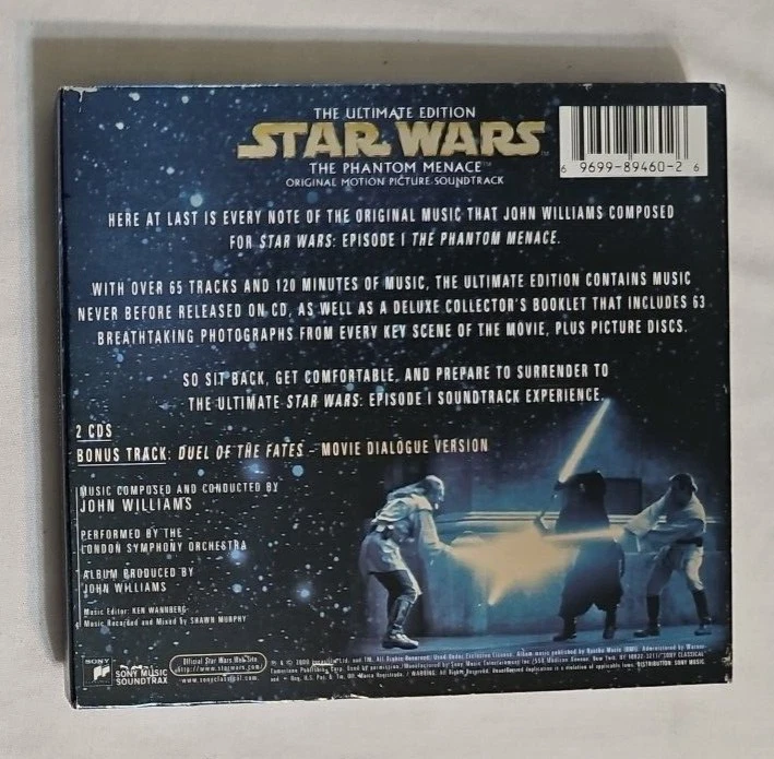 Immerse yourself in the epic saga that is "Star Wars: The Phantom Menace" with the Ultimate Edition Original Motion Picture Soundtrack, composed by the legendary John Williams and performed by the London Symphony Orchestra. This two-disc collection captures the full majesty of the film's iconic soundtrack, presented in English and embodying the very essence of the Star Wars universe. Released on Sony Classical in 2000, the album features a generous run time of 124 minutes, allowing for an extended listening experience that will transport you right into the heart of the galaxy. Whether you're a long-time fan or discovering the allure of this timeless series for the first time, this soundtrack is a must-have for any collection.