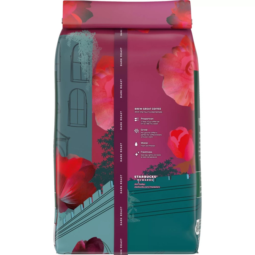 With more than 21,000 stores in 65 countries, Starbucks is the premier roaster and retailer of specialty coffee in the world. It is passionate about ethically sourcing and blending only the finest Arabica coffee beans and roasting them with great care for the perfect cup of coffee every time. Product Features: Dark roasted with shades of cocoa Bold, full-bodied taste with a robust flavor 80/20 blend Pairs well with dark chocolate Includes 40 oz. of ground coffee