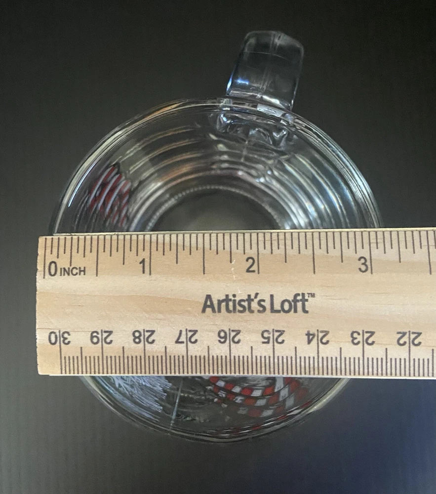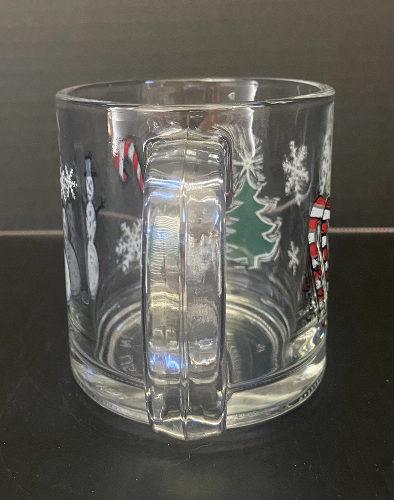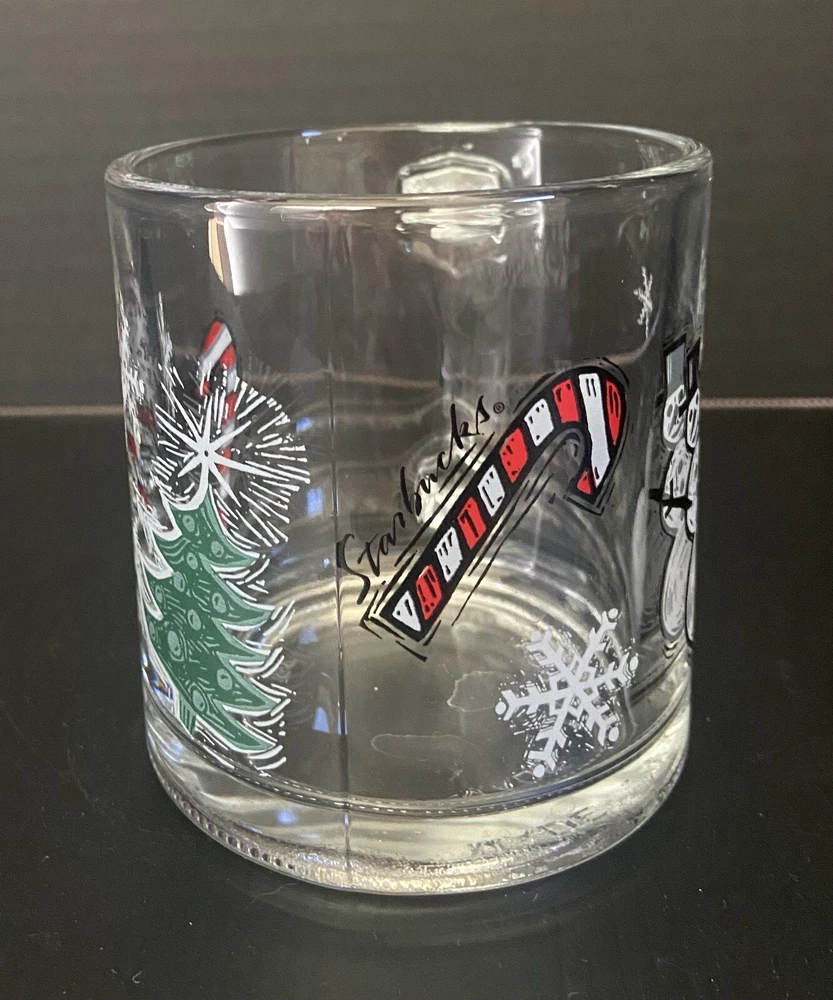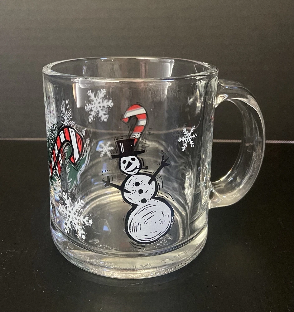 This vintage Starbucks clear glass coffee mug features an embossed snowman design, perfect for the Christmas season. With a 10 oz capacity, this medium-sized cup is ideal for hot or cold beverages and is made of normal glass. The mug is decorated with an all-over candy cane pattern and is a great addition to any collection. This Starbucks Clear Glass Christmas Mug Vintage Snowman is a must-have for any collector or fan of vintage items. It is an original, licensed reproduction from 1994 and is perfect for unisex adults and teens. The mug is easy to clean, but it is recommended to hand wash only. Add a touch of retro style to your kitchen with this unique and magical piece.
