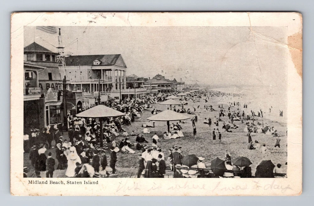 Staten Island NY-New York, Crowd At Midland Beach, Vintage c1906 Postcard