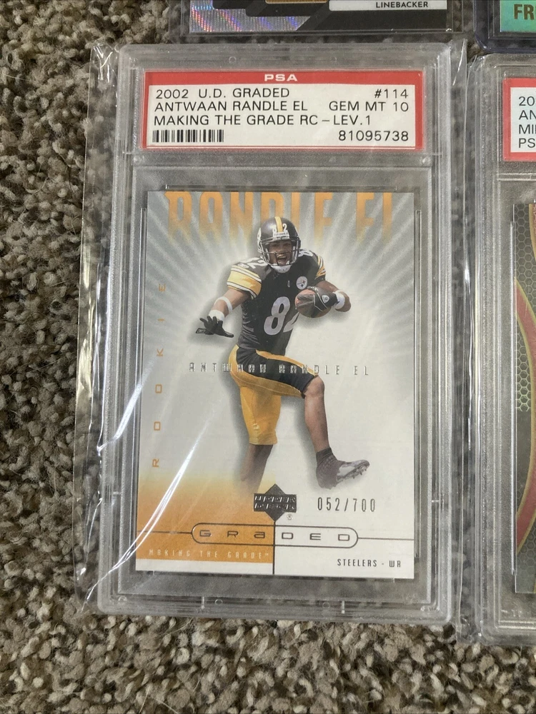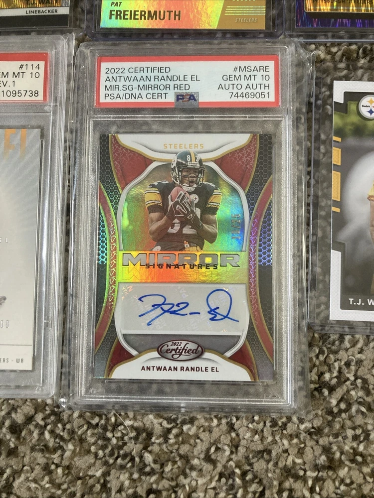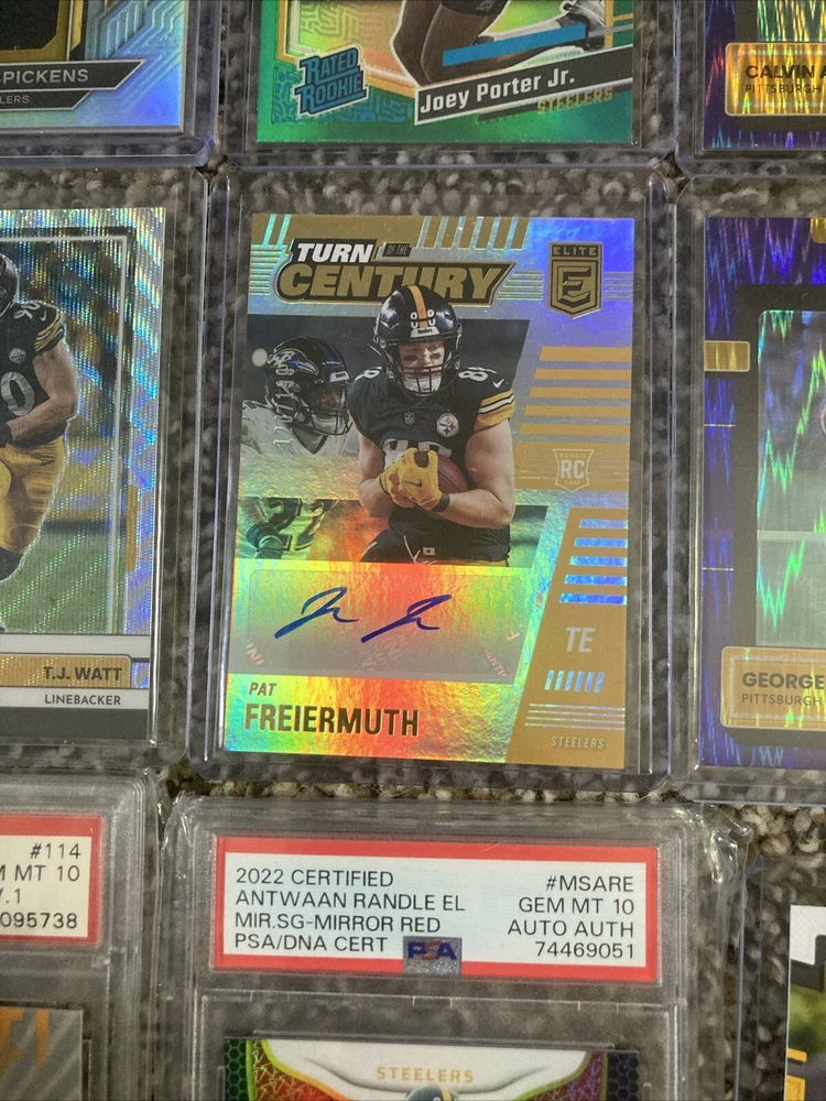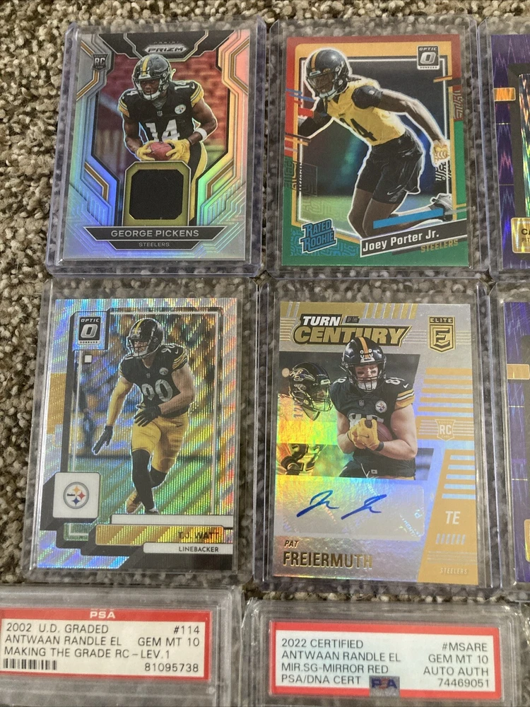 This rare lot of Steelers cards includes an autographed trading card, a jersey, and a Mint 10 graded card. The cards feature the Pittsburgh Steelers team and are perfect for any collector or fan of the National Football League (NFL). The autographed card is a great addition to any collection, and the jersey is made in the country/region of manufacture. This lot is a must-have for any sports trading card enthusiast and is sure to impress.