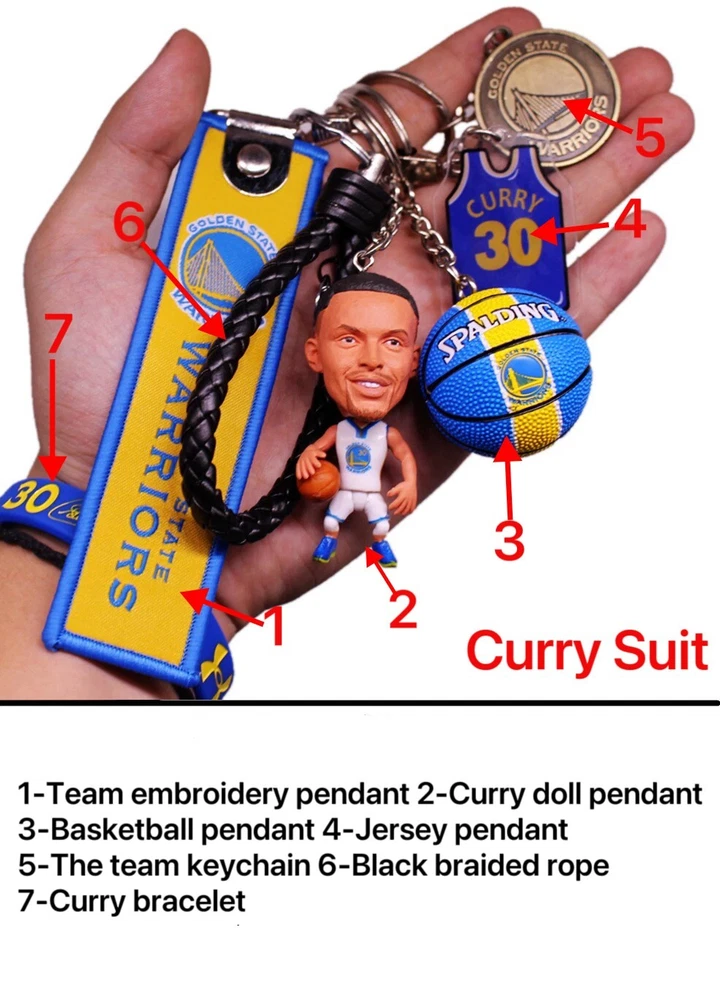 DESCRIPTION PAYMENT SHIPPING RETURN POLICY CONTACT US SECURE PAYMENT Payment We accept payment by any of the following methods: PayPal Please pay as soon as possible after winning an auction, as that will allow us to post your item to you sooner! Shipping In the very unlikely event that your item is lost or damaged during post, then WE are responsible and will issue either a full refund or replacement. Returns If you are not 100% satisfied with your purchase, you can return the product and get a full refund or exchange the product for another one, be it similar or not. You can return a product for up to 30 days from the date you purchased it. Any product you return must be in the same condition you received it and in the original packaging. Please keep the receipt. Stephen Curry Figure Souvenir Keychain NBA Warriors Memorabilia Curry Fans Gift PACKAGE INCLUDED: 1-Team embroidery pendant 2-Curry doll pendant 3-Basketball pendant 4-Jersey pendant 5-The team keychain 6-Black braided rope 7- Curry bracelet DESCRIPTION: Dimension: Doll length 6.5cm 100% New and Never Used Contact Us Email: Please Use E-Bay's E-mail System We will try our best to get to you as soon as we can!