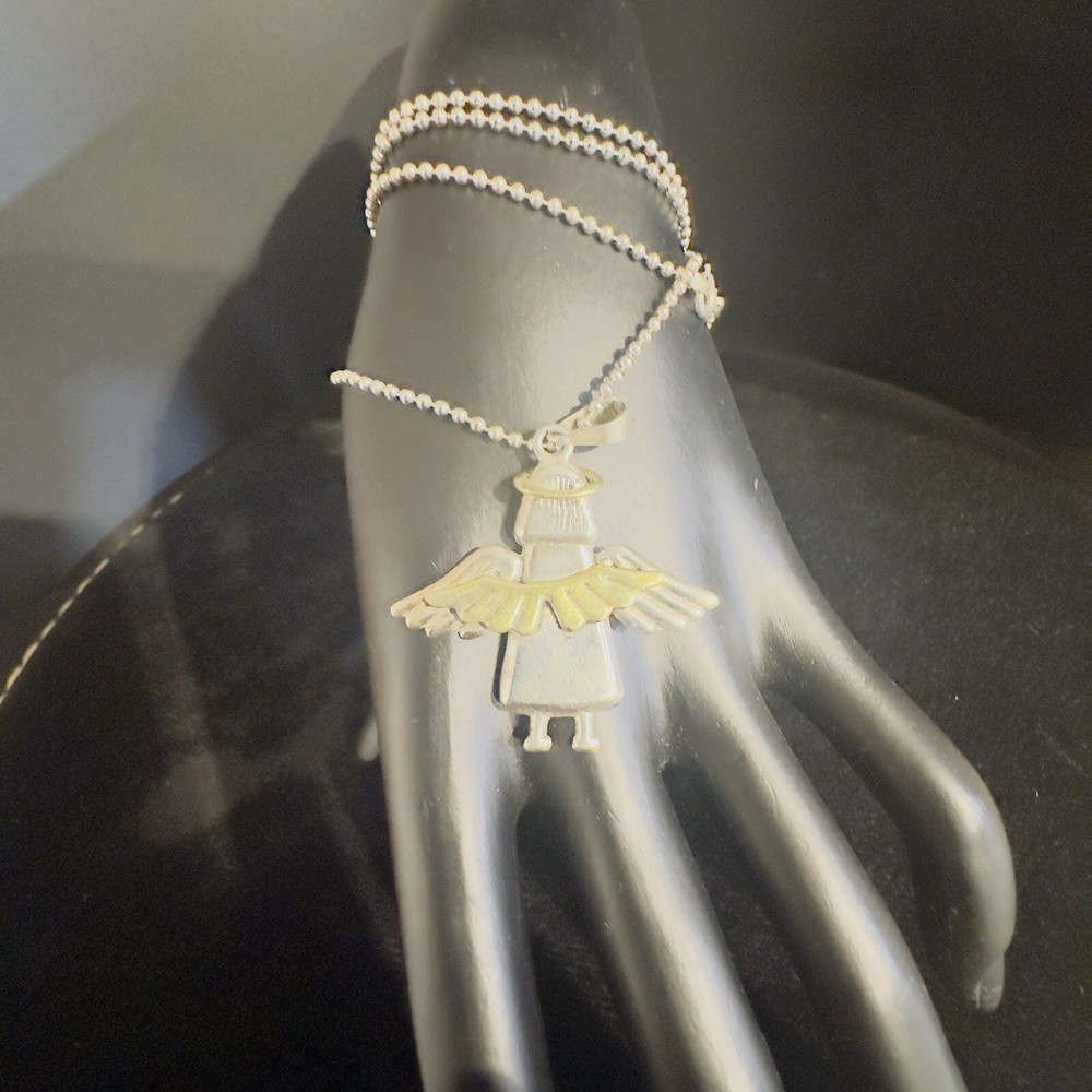 Sterling Silver 925 Mixed Metal Angel Wing Pendant Ball Beaded Necklace 20” Wings are gold tone Angel tested Sterling not marked Necklace is 925 Italy 9.6 g