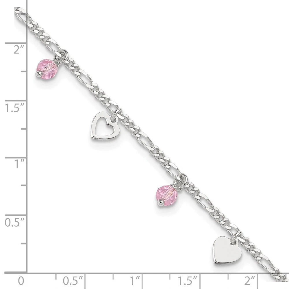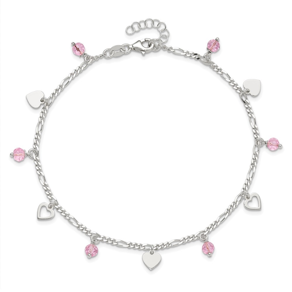 925 Sterling Silver Heart Dangle Anklet 10 Inch 2.43 Grams for Women