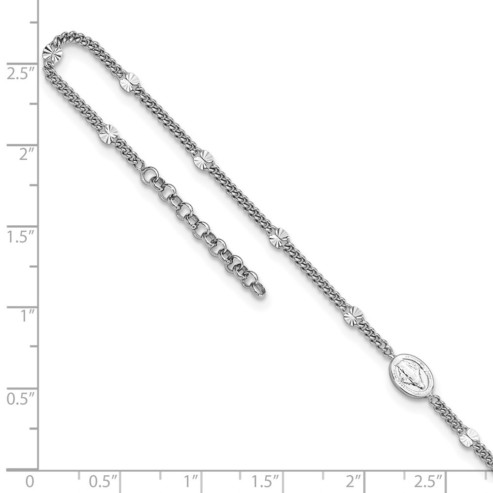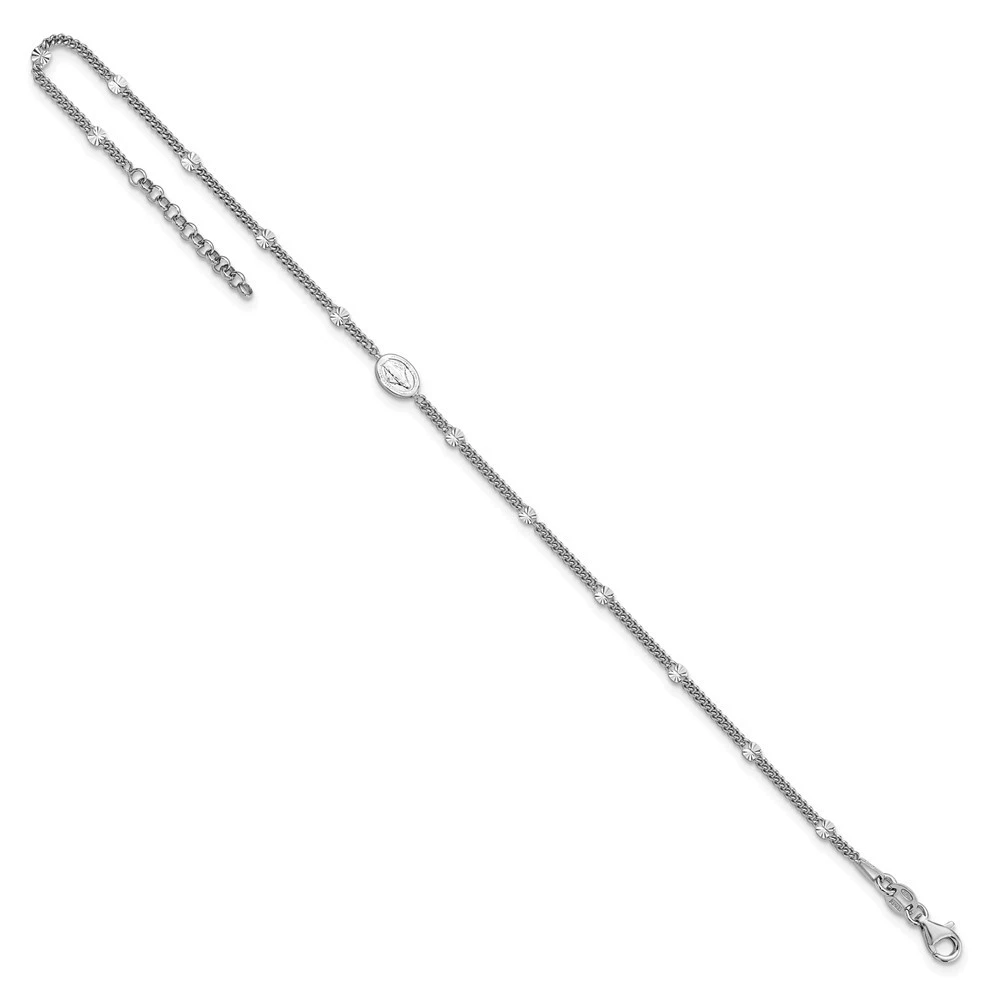 $ 52.8925 Sterling Silver Rhodium Beaded Textured Anklet 9in w/1in Extender