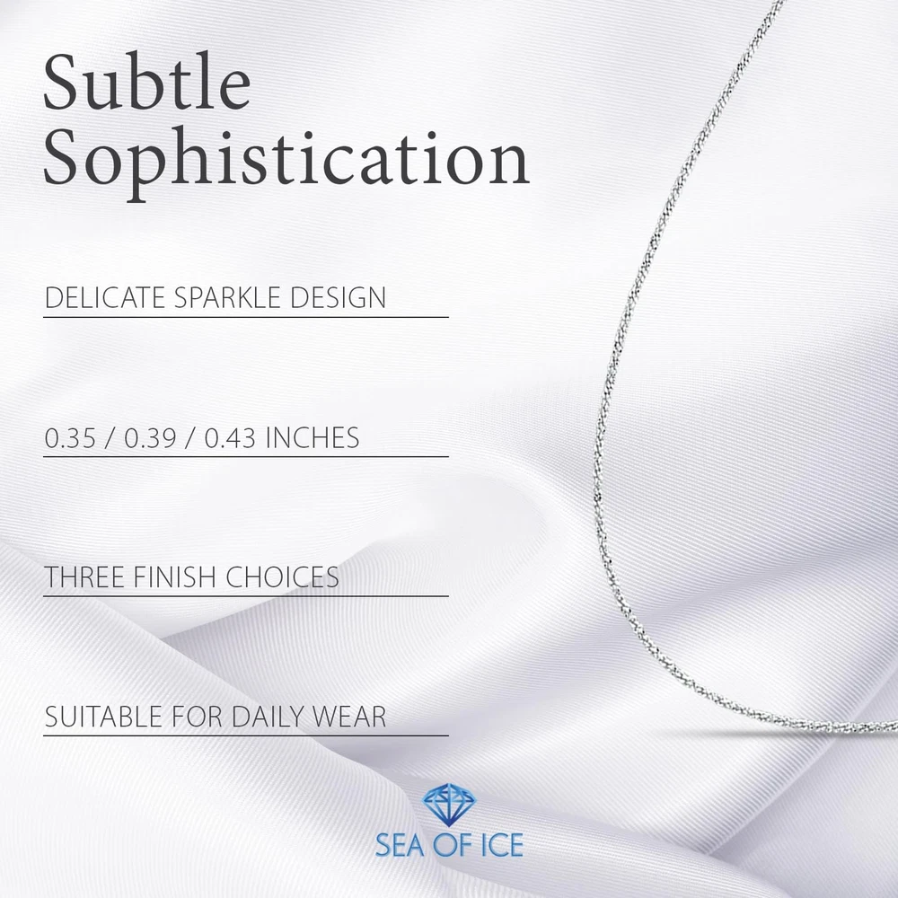 Sterling Silver Sparkle Rock Chain Anklet for Women, Italian made chain - 2mm Anklet size 9", 10" and 11" women anklet jewelry Product Description The video showcases the product in use. The video guides you through product setup. The video compares multiple products. The video shows the product being unpacked. Lightweight Design Perfect for Daily Wear Tarnish-free 925 sterling silver anklet; available in sizes 9", 10", and 11". Comfortable Fit For Casual or Formal Styles 2mm thick anklet with lobster clasp; complements any outfit or occasion. 1 Sparkle Chain Anklet 2 Elegant & Durable A Blend of Style & Durability Sterling Silver Sparkle Rock Chain Anklet Made with 925 sterling silver, this Italian-crafted anklet is tarnish-free, nickel-free, and designed for maximum comfort. Available in sizes 9", 10", and 11", it features a secure lobster claw clasp and a sleek sparkle rock chain design. Perfect for both casual daily wear and elegant occasions, it is built to last and maintain its shine. Versatile Accessory for Women Perfect for Any Occasion This anklet pairs beautifully with casual or formal outfits. Its minimalist design is ideal for layering or wearing solo, while the available finishes—sterling silver, yellow gold, and rose gold—make it a stylish and versatile addition to any jewelry collection. Superior Materials Tarnish-Free Silver Made with 925 sterling silver; hypoallergenic, durable, and polished for shine. Gift-Ready Packaging Perfect for Any Celebration A thoughtful gift for Birthdays, Anniversaries, and Mother’s Day; ready to delight. 1 Premium Craftsmanship 2 Ideal Gift Choice Metal stamp 925 Chain Solid Color Sterling Silver Material Sterling Silver Metal Sterling Silver Length 9 inches Package Dimensions 3.86 x 2.95 x 0.39 inches; 0.39 ounces Clasp Lobster Clasp Size 9'' 2.95 inches x 3.86 inches x 0.39 inches. Weight: 0.39 oz Shipping from the USA All of our products are shipped from the USA, ensuring quick delivery to your destination. Payment We offer the following payment methods: PayPal, credit card, bank transfer, and eBay's secure payment system. Free Shipping & Free Returns Shipping within the USA is FREE. Additionally, any return is absolutely free for you. Risk-Free Purchase You have the option to return an item within 30 days without any justification. We cover the return shipping costs! Fast Shipping We ship immediately upon receipt of payment. Generally, the package is delivered within 2-3 days in the USA. If it takes longer, we will contact you. Quality and Costs Made in Europe, USA, China No customs fees or additional charges Total satisfaction guarantee Invoice with declared VAT available upon request in .pdf format Feedback Your feedback is very important to us. After you pay for your purchase, you will automatically receive positive feedback from us.
