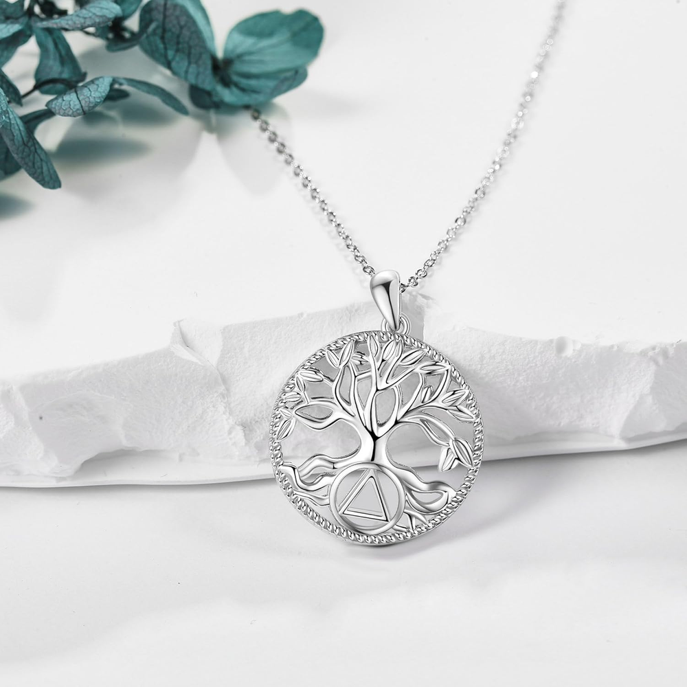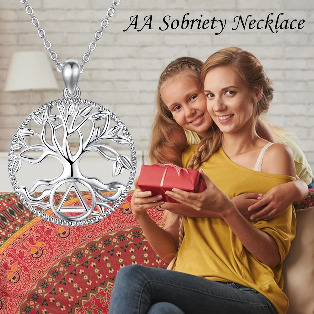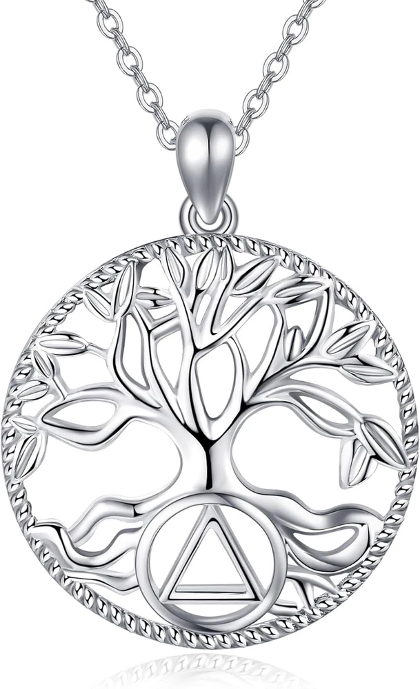 Product Description Tree of Life AA Necklace The Tree of life symbolizes eternal life, a prosperous family, health, vitality, strength, and growth. The Sobriety Circle and Triangle Symbol is the symbol used by Alcoholics Anonymous, meanings of a three-part disease--physical, mental, and spiritual. Sobriety AA necklace to celebrate recovery, against alcohol, AA anniversary gifts, and sobriety gifts for both men and women during sobriety. Suitable To Wear The size of the AA pendant is 23 mm*25 mm(0.9 inches*0.98 inches), and the length of the 1.2 mm O chain is 18 inches chain. Total in 925 Sterling Silver This AA Necklace is made of Hypoallergenic real 925 sterling silver, Nickel-free, Lead-free, and Cadmium-free. Long-Time Wearing Keeps You a Good Health. A Nice Gift Choice Whether it's a birthday, a special occasion, or just an ordinary day, jewelry is always a nice gift choice. This AA necklace comes with a gift box, it is very suitable for Christmas, Hannukah, Mother's Day, Valentine's Day, and birthday gifts for yourself, or for anyone you loved. Fine Jewelry for Women Each jewelry pieces receives the highly attention to detail and customer experience, from concept to completion. All of our products are manufactured to the high standards, by highly skilled workers using the hypoallergenic 925 sterling silver . It's very suitable for daily wear. With the motto of "Fine, Creative, Funny". Our Jewelries focus on creating high quality and unique design sterling silver jewelry. Although our brand is young, we have a highly professional team that integrates design, production, photography, sales and service. All the products are manufactured at high level. Every detail is highly valued from concept to completion, to brings you each surprising and happiness moment in life. We hope every piece of Jewelry will bring our customers an surprising and happiness wearing experience.