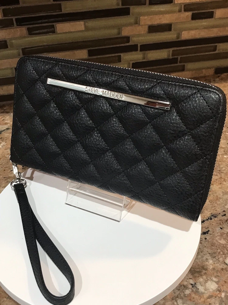 -Condition: Pre-owned ✅ ; in excellent condition -Interior wear (some rubbing/peeling in some areas) -Color: Black 🖤 -Large Organizer Wallet/Wristlet 🔥 -Separated Compartments -Credit Card Slots -ID Window -Zip Around -Perfect for traveling ✈️ 🧳 💯 -Silver Hardware