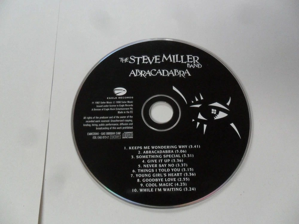 Steve Miller Band - Abracadabra (CD 1982/1998) Eagle Records EDL EAG 073-2 Keeps Me Wondering Why 3:43 Abracadabra 5:10 Something Special 3:35 Give It Up 3:35 Never Say No 3:37 Things I Told You 3:15 Young Girl's Heart 3:33 Goodbye Love 2:53 Cool Magic 4:23 While I'm Waiting 3:26