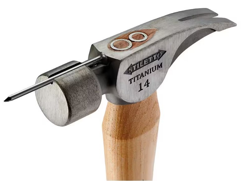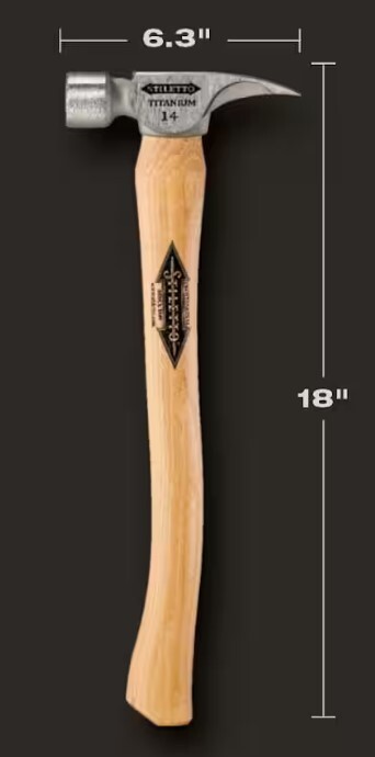 - NOTE: PLEASE READ PRODUCT DESCRIPTION CAREFULLY BEFORE PURCHASING. - NOTE: NO DELIVERY TO FREIGHT FORWARDING COMPANY ADDRESSES AND WAREHOUSE, BUSINESS ADDRESS, THE UPS STORE, UNITED STATES POSTAL SERVICE. - NOTE: WE DO NOT WORK ON SATURDAY AND SUNDAY. YOUR ORDER IS PROCESSED IN A MAXIMUM OF 10 BUSINESS DAYS, EXCLUDING SATURDAYS AND SUNDAYS. - NOTE: ORDERS TAKE A LONG TIME TO PROCESS, IF YOU CAN'T WAIT, YOU CAN SUBMIT A CANCELLATION REQUEST AT ANY TIME WHILE THE ORDER HAS NOT BEEN SHIPPED. - NOTE: DO NOT BUY MULTIPLE PRODUCTS IN THE SAME ORDER. PLEASE BUY EACH PRODUCT AS ONE ORDER. Stiletto 14 Oz. Titanium Smooth Face Hammer with 18 in. Curved Hickory Handle About This Product The Stiletto TI14SC is a 14 Oz. Titanium Smooth Face Hammer with 18 in. Curved Hickory Handle. The Hammer has a straight claw design and Stiletto's signature Magnetic Nail Starter. The TI14SC has the comparable striking force of 24 Oz. Steel hammer and is recommended for residential framing and remodeling. Stiletto Tool Company has been synonymous with high quality hand tools dating back to 1849. With its long history and strong reputation, the brand has evolved into the modern day standard for innovative, lightweight, ergonomic, productive, and professional tools. We set the standard with our line of premium titanium hand tools that span numerous trades such as framing, remodeling, finish work, siding, demolition, concrete, and drywall. Titanium is 45% lighter weight while providing the same striking force and strength as steel. Titanium tools also produce 10 times less recoil shock which helps reduce carpal tunnel syndrome. The combination of these features means less down time, more productivity, and most importantly less pain while working. Highlights 14 Oz. solid smooth face titanium head 18 in. Curved axe-style hickory handle 1.5 in. Diameter face, 17 1/2 in. overall length, 23.5 Oz. overall weight Titanium delivers ten times greater dampening of recoil than steel Lightweight and balanced titanium head reduces arm fatigue Straight claw design Stiletto's signature magnetic nail starter Dimensions Assembled Depth (in.): 18 in Assembled Height (in.): 1.5 in Assembled Width (in.): 6.25 in Handle Length (in.): 18 in Weight of Head (oz.): 14 Details Claw Type: Straight Color Family: Silver Face Type: Smooth Features: Comfort Grip Hammer Type: Straight Claw Hand Tool Type: Hammer Handle Material: Wood Head Material: Titanium Head Replaceable Head: Yes Tools Product Type: Hand Tool