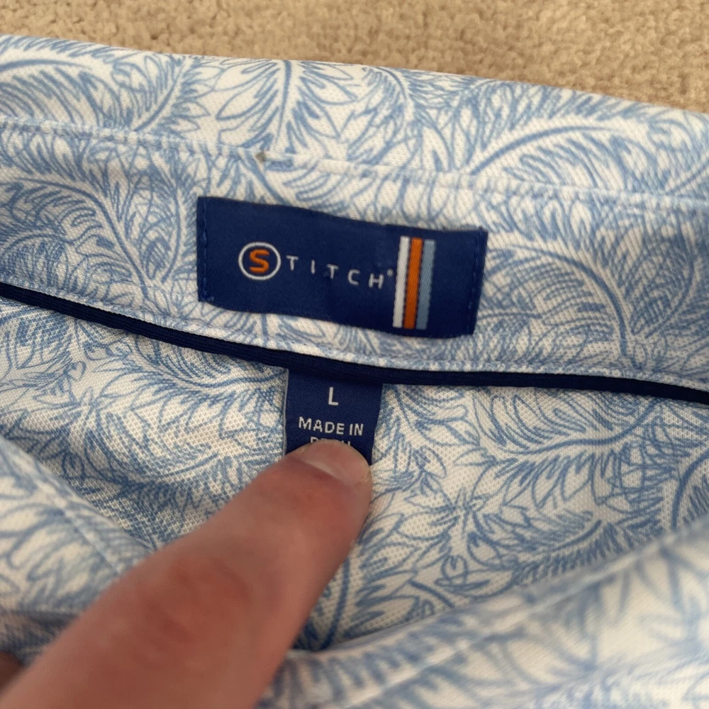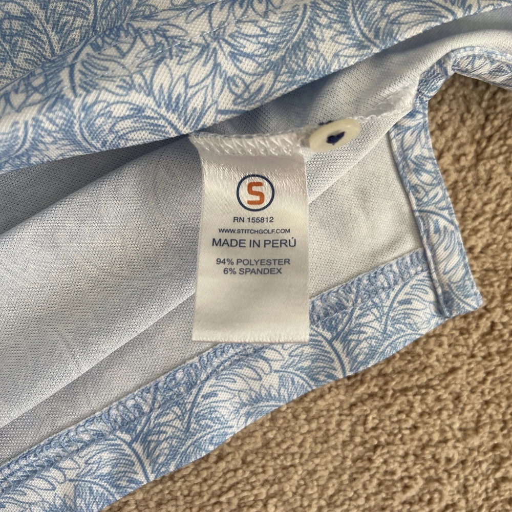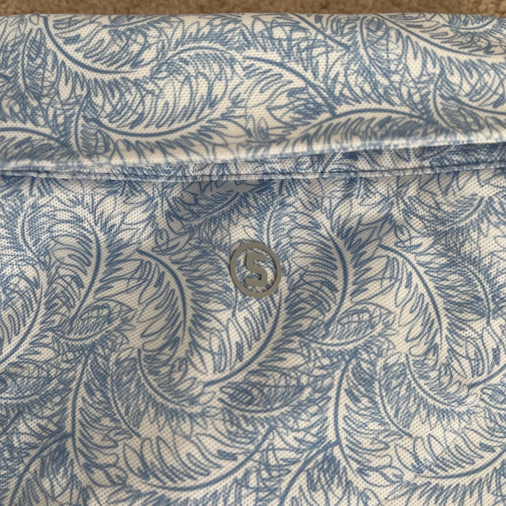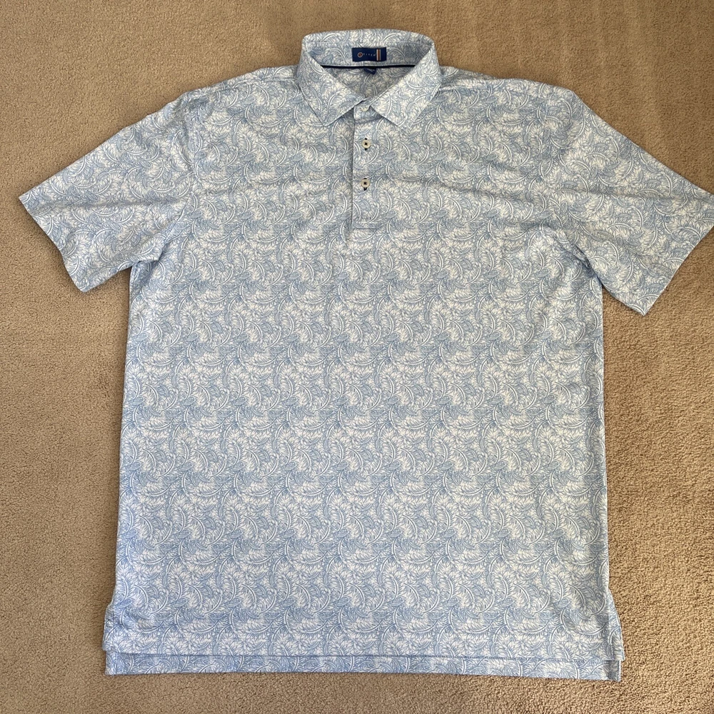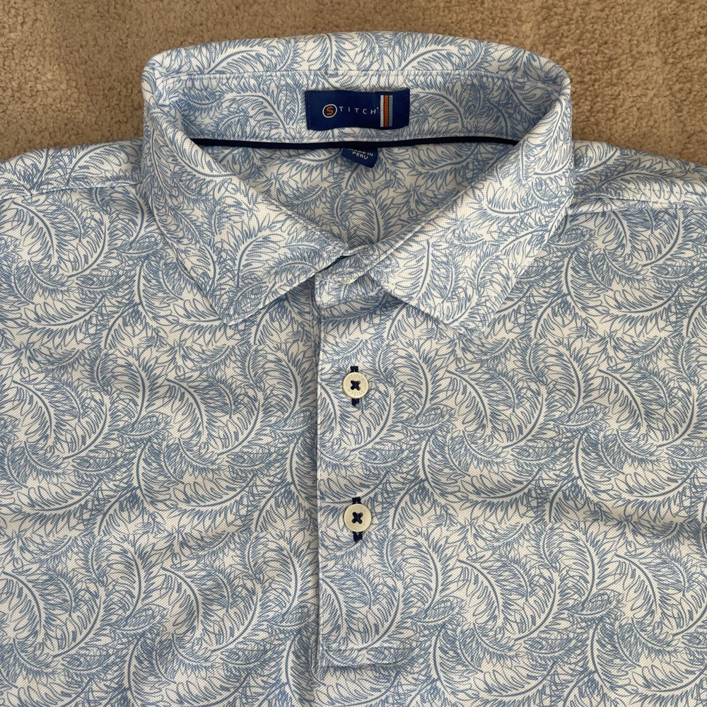 Stitch Performance Mens Large Blue Floral Stretch Soft Golf Polo Shirt