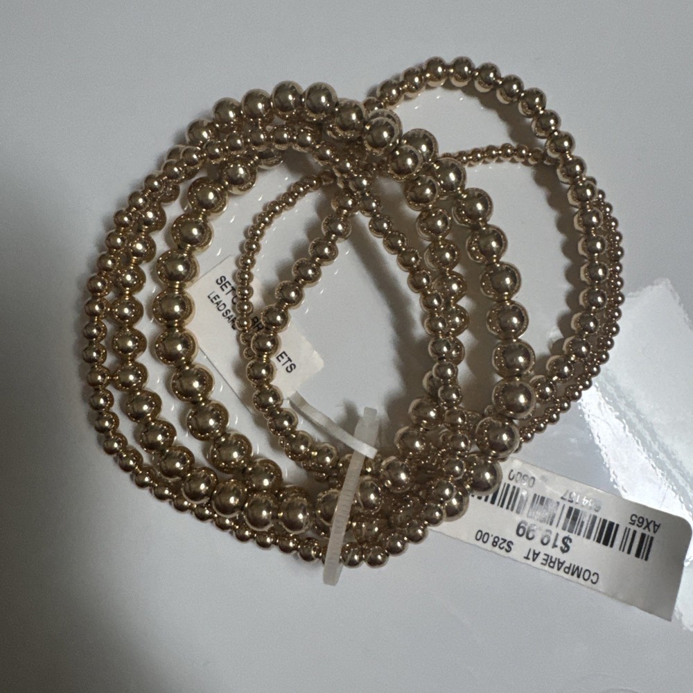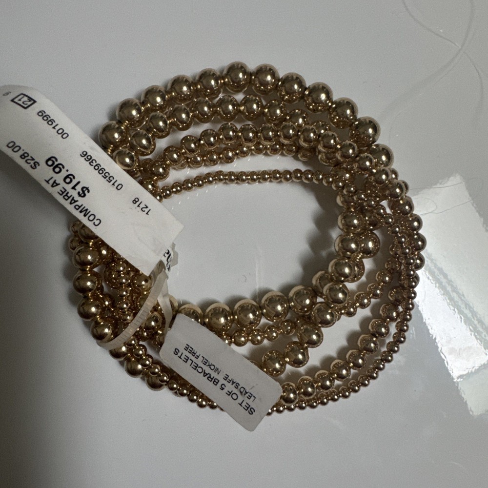Fun and lightweight. Multiple gold beaded bracelets look seriously rich and sexy.