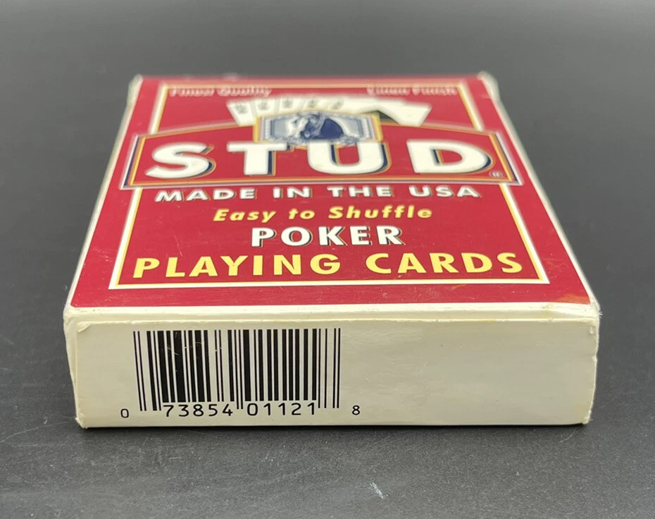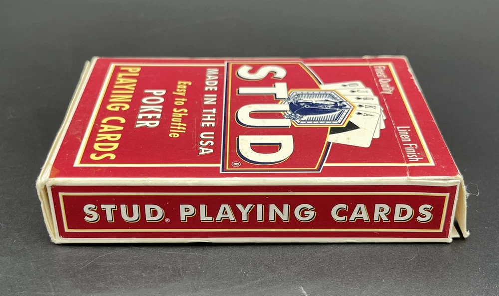 Stud Poker Playing Cards Linen Finish Made In The USA Red Pre-Owned Pre-owned in overall good condition. Actual item shown in the photos. Ships within 1 business day of payment being received We ship with care! Checkout my other items for sale for other playing cards, sports cards, comics, video games, and much much more! Please feel free to ask any questions!