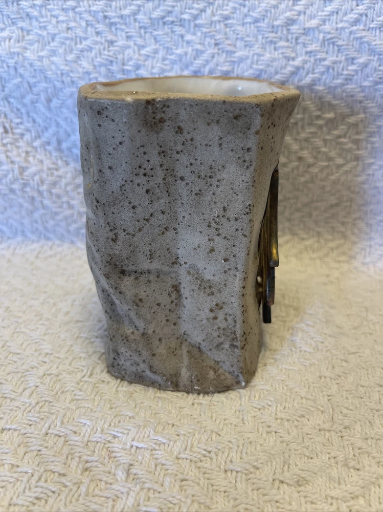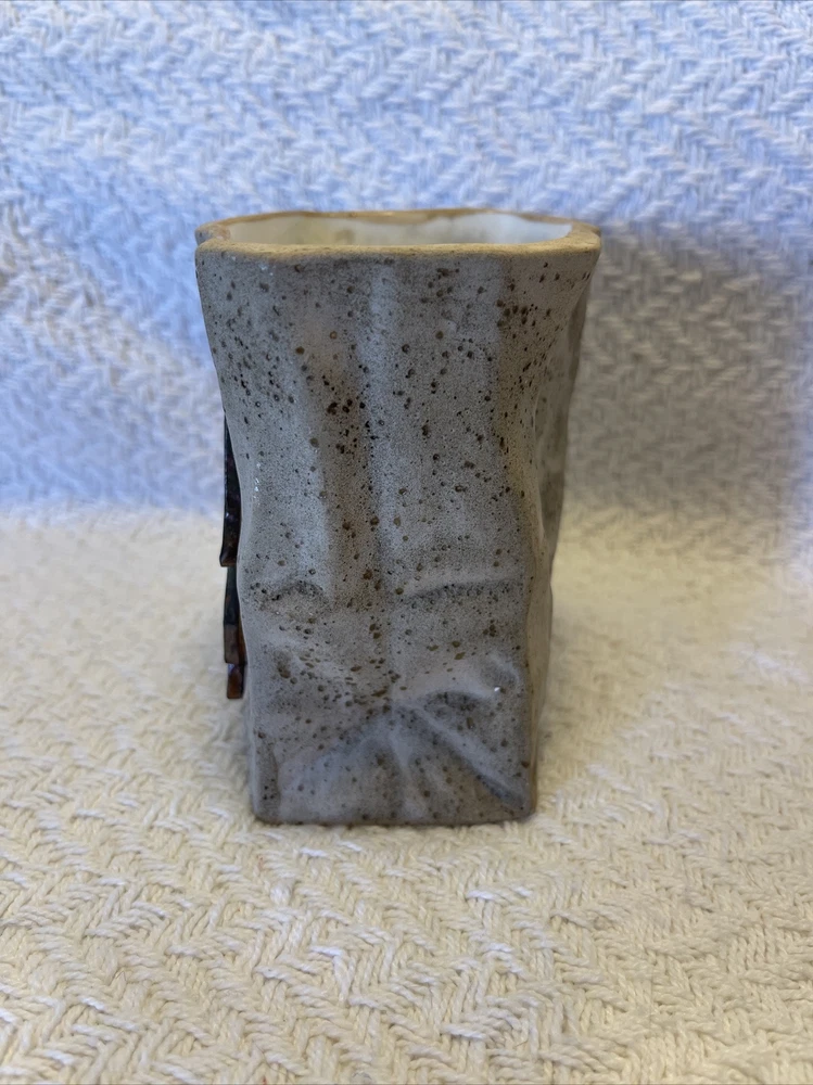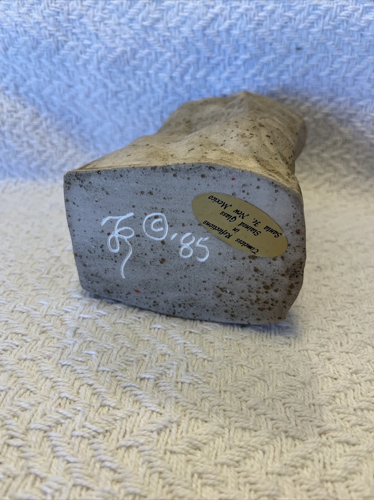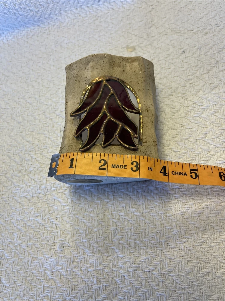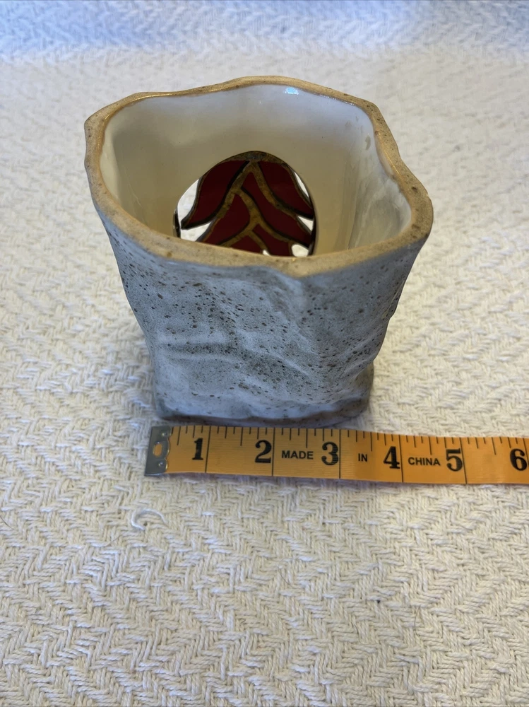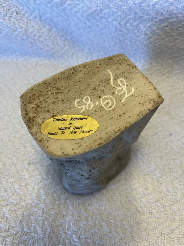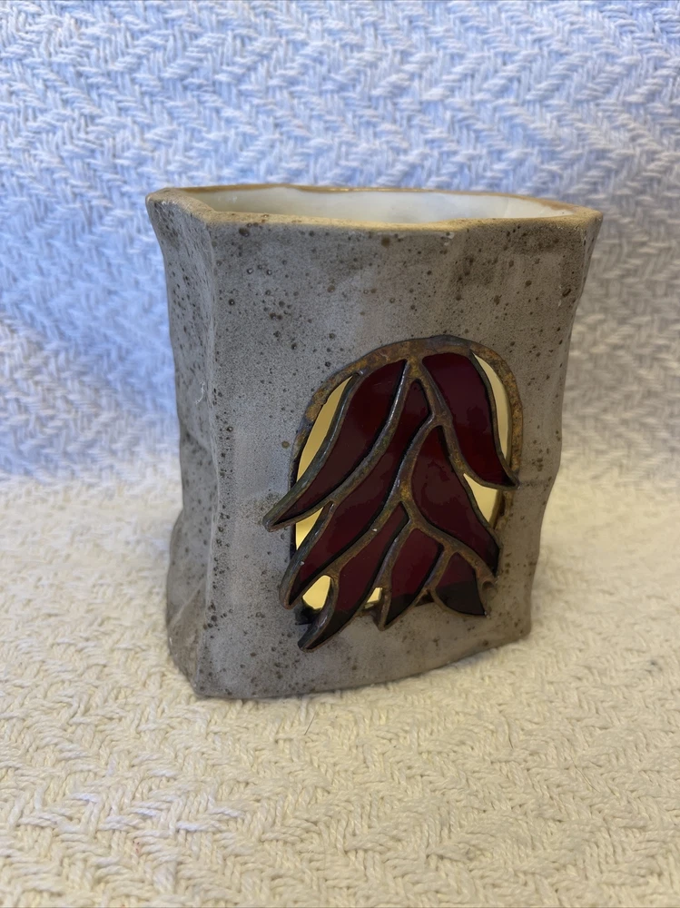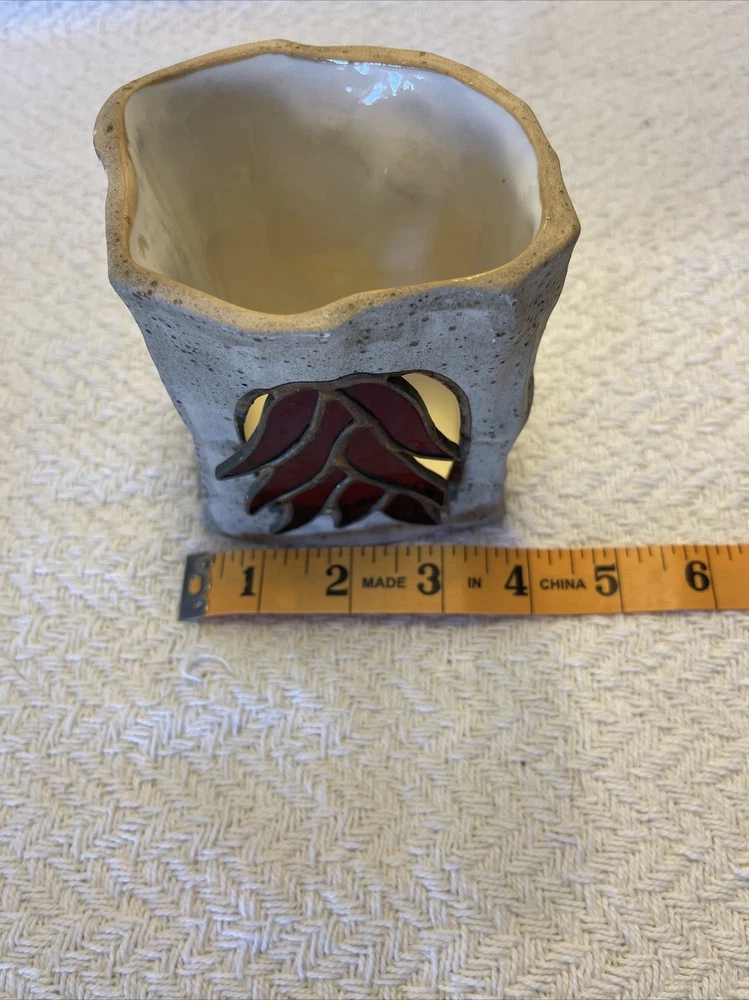 Studio Pottery Red Stained Glass New Mexico Candle Holder Signed 1985 Handmade