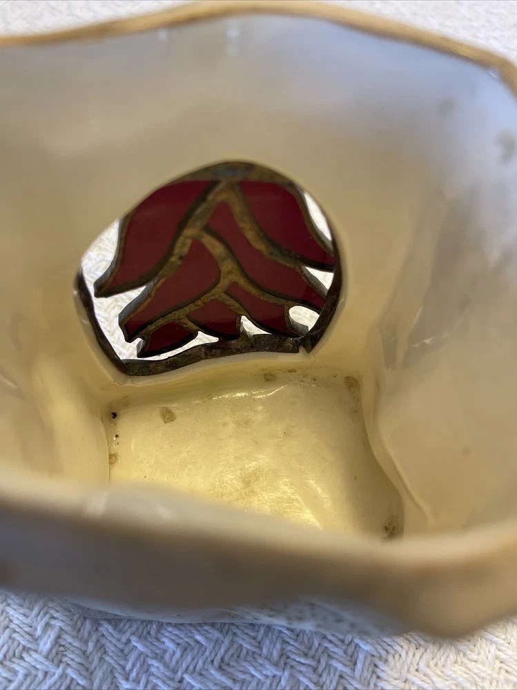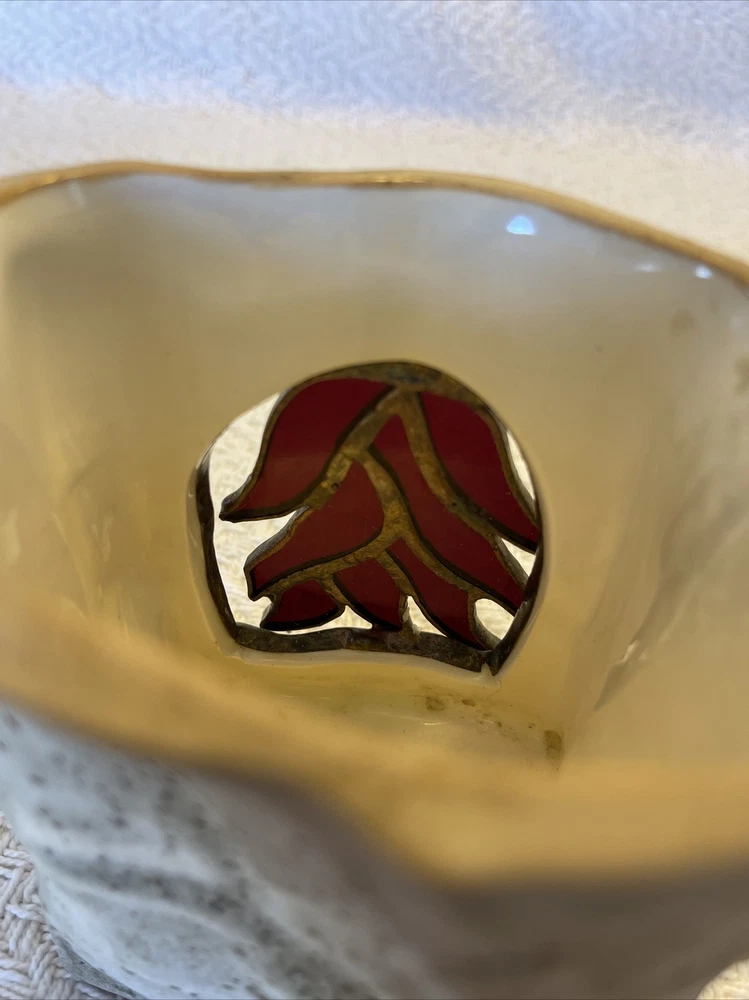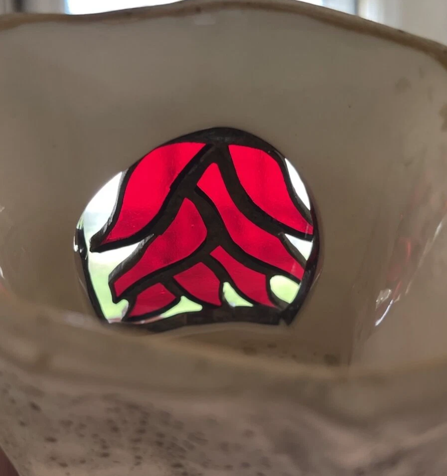 Year Manufactured:1985Time Period Manufactured:1980-1989Material:Stained GlassColor:RedFeatures:Stained GlassType:Candle HolderBrand:StudioSize:SmallCountry/Region of Manufacture:United States