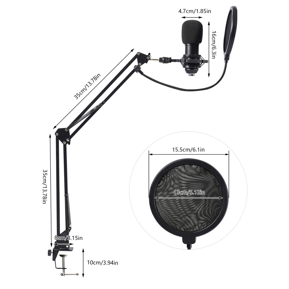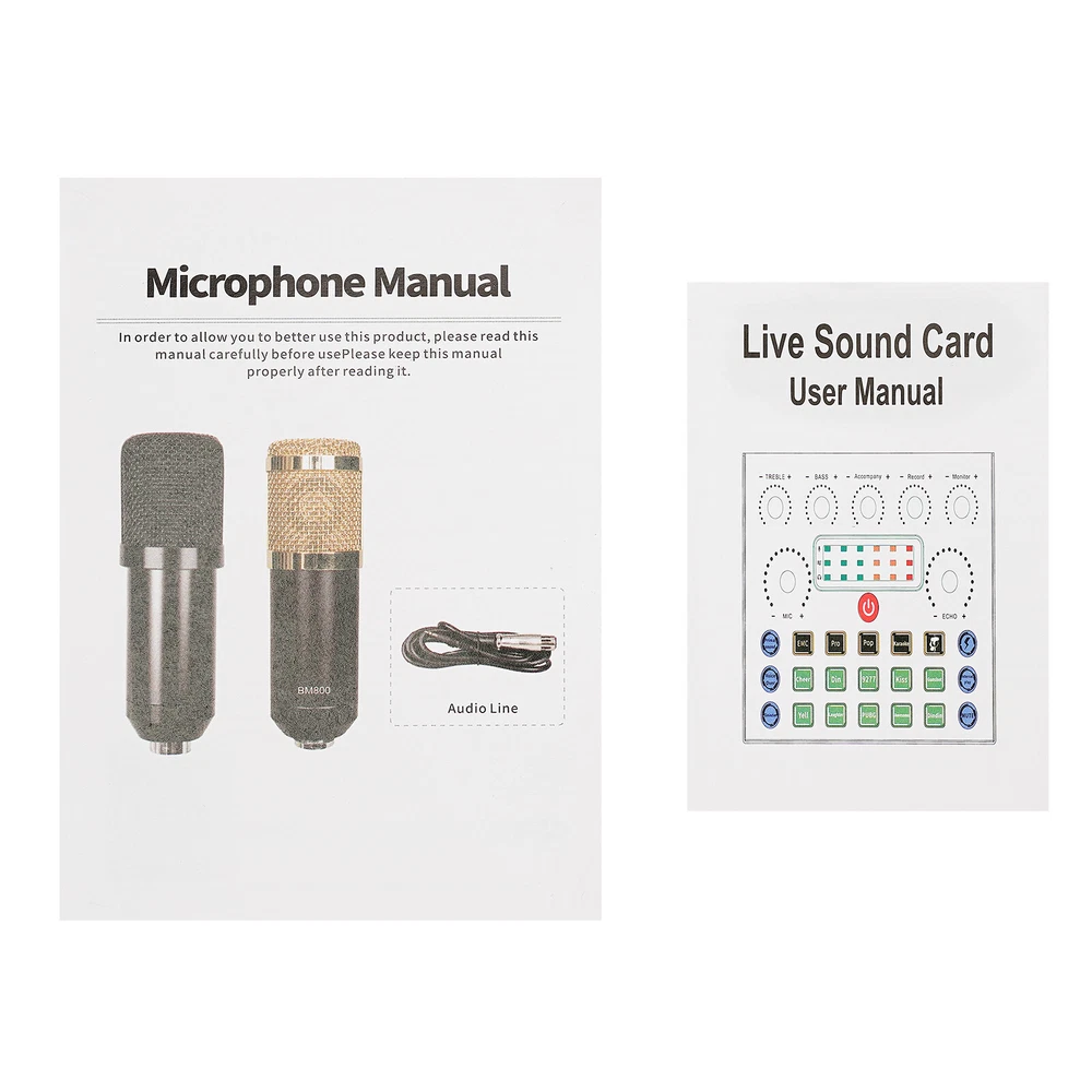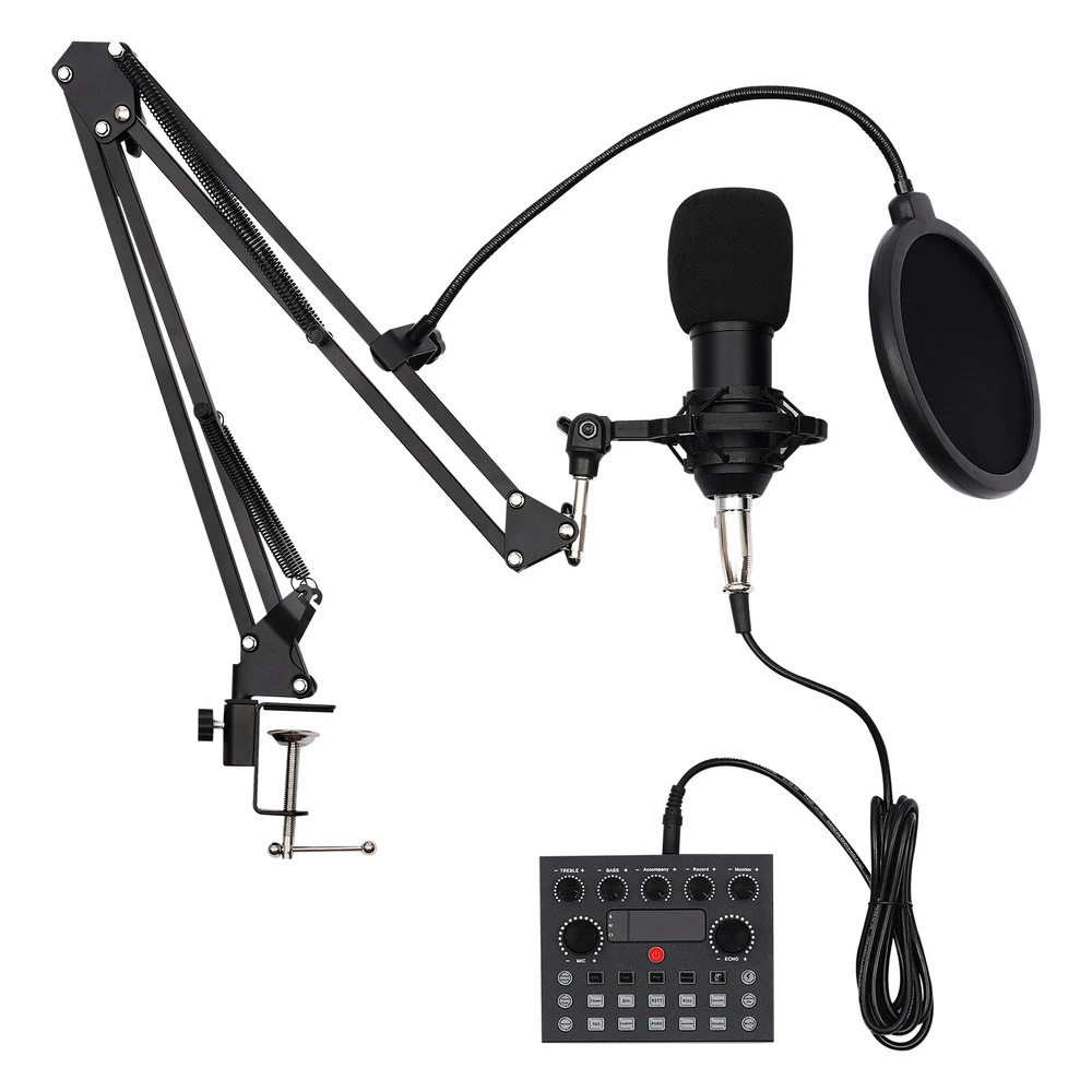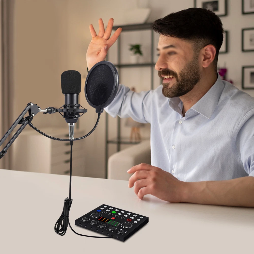Podcast Equipment Bundle Home Studio Recording Kit Music Mixer Headphones NEW Home Studio Recording Kit Microphone Set Music Podcast Equipment Mixer Condenser Description The live-streaming industry has become increasingly popular in recent years. More and more people are using live streaming platforms to teach, sell, etc., bringing more fun into people's lives. If you want to be like them, then our high-quality, powerfully functional, multi-sound mode podcast equipment bundle is a great helper for your broadcasting work and can bring a clearer experience to your audience. Key Features Build to Last: This podcast equipment bundle is made of high-quality plastic and metal and adopts a baking paint treatment, making it durable, so you can use it without frequent replacement, which can save your use cost. Multiple Sound Modes: It includes 7 sound modes, 10 sound effects, and 4 sound changing effects (female, male, baby, and monster), which can effectively solve embarrassing problems when you can't be responded in the live broadcast room, making your live broadcast more interesting and vivid. Clear Vocals: It offers a sampling rate of up to 24 bits/192 kHz for unparalleled clarity in your recordings. The three-layer protection system prevents noise and the microphone allows direct limiting of the sound card. High Compatibility: It can be used on any mobile phone (even two phones at the same time), Bluetooth, PC, tablet, iPad, PS4, Switch, Apple iOS, Android, and most gaming platforms to meet your needs in different scenarios. Fully Featured: This podcast equipment bundle contains almost all the common functions of broadcasting, such as treble, bass, record, monitor, echo/MIC adjustment, accompaniment, voice change, and elimination of the original sound in the song, bringing more possibilities to your live broadcast. Easy to Use: After assembly, you just plug this recording microphone into the mixer socket and use the device without the need for additional driver software. The user-friendly operation panel and two English manuals also help you a lot. Ideal Gift: With its powerful functions, it is a great gift for friends and family who love or are engaged in the live broadcast industry so that they can enjoy a more convenient live broadcast environment. Modern Appearance: The smooth lines and timeless black give this product a sense of modernity and fashion, bringing a cool element to your live broadcast. Highly Portable: Thanks to the detachable design and lightweight (2.43 lbs), you can easily carry this podcast equipment bundle in your bag for outdoor broadcasts or performances. Details Mount Bracket: It can stably hold the microphone without easy shaking. It's also adjustable to provide you with a more comfortable position. Blowout Preventer: It effectively filters out external noise to give you a clearer and more audible sound. Earphones: The earphones with long lines eliminate the need to purchase additional headphones and allow you to hear yourself live. Microphone Cover: It can protect your microphone and prevent sundries from entering. Application It is suitable for live streaming, broadcasting, podcasting, singing, music recording, and gaming at home, office, school, etc. It is ideal for live broadcast enthusiasts, beginners, DJs, etc. Specification Color: Black Material: Plastic, Metal Process: Baking Paint Model of Condenser Microphone: BM800 Assembly Required: Yes Mounting Type: Clamp Hanging Compatible Devices: Laptop, PC, Tablet, Smartphone Number of Pieces: 1 Sound Modes: 7 Sound Effects: 10 Sound Changing Effects: 4 Power Source: Battery Powered Battery Type: 1 * 18650 Lithium Batteries (Included) Battery Capacity: 500mAh Standby Time: About 2 Hours Diameter of Jack Port: 3.5mm/0.14inch Sensitivity: -34 dB ± 2 dB (0 dB = 1 V/Pa at 1 kHz) Frequency Range: 20H - 20kHz Equivalent Noise Level: 16 dB-A Impedance: <= 200 ohms Recommended Load Impedance: >= 1000 ohms Connector: 3-pin XLR to IEC Max. Sound Pressure Level: 132 dB (1kHz ≤ 1% THD) Bow Clamp Distance: ≤4.5cm/1.77inch Live Sound Card Size: 12.5*10.6*2.7cm/4.92*4.17*1.06inch Microphone Size(D*H): 16*47cm/6.3*18.5inch Package Size: 42*20.5*6.8cm/16.54*8.07*2.68inch Net Weight: 1.1kg/2.43lbs Gross Weight: 1.4kg/3.09lbs Package Included 1* Live Sound Card 1* Microphone 1* Mic Tripod Set 1* Microphone Cover 1* USB Cable 2* 3.5mm TRRS Audio Cables 1* XLR Cable 1* Earphones 1* Blowout Preventer 2* English Manuals All Accessories for Installation Notes 1. Please charge the battery after receiving the product and press and hold for 5 seconds when switching on the product. Please do not put the microphone too close to the sound card when switching it on, otherwise, there will be noise. 2. For a better user experience, please read the user manual before setting up. 3. Please note that if your phone does not have a 3.5mm jack, you need an adapter(not included) (TYPE-C, Apple, mini USB, etc to 3.5mm). 4. Please allow the slight color difference caused by the shooting light and 1-3 cm error due to manual measurement, and make sure you do not mind before ordering. Payment Delivery details Terms of sales About us Contact us Payment We accept ebay payment 。 Fees such as import duties, taxes are not included in the item price or shipping costs. These charges are the buyer's responsibility. Delivery details Shipping: 2-9 working days to: USA Terms of sales We maintain high standards of excellence and strive for hundred percent customer satisfaction. Feedback is very important to us. We hope that you contact us immediately before you give neutral or negative feedback, so that we can address your concerns. It is impossible to address issues if we do not know about them! About us Your satis faction is our ultimate goal. We work hard to earn your trust and future business. Our certified technicians have tested each item before shipping. The unit comes with 1 year limited warranty on all manufacturing defects. a) If you receive a defectiv