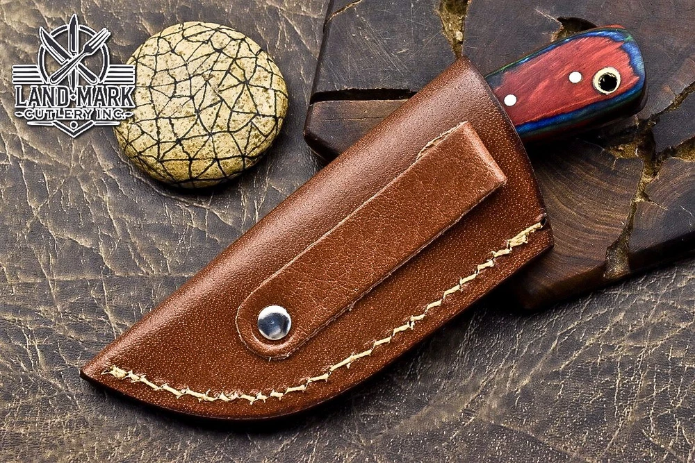 Custom Hand Made DAMASCUS STEEL HUNTING KNIFE WITH PAKKA WOOD HANDLE We offer a shipping discount for More then one purchased . And discount will be apply on combine invoice, Discount will not apply on separate payment. ITEM DETAILS OVER ALL LENGTH 3.0 inches long (Approx) HANDLE LENGTH 1.5 inches long (Approx) BLADE LENGTH 1.5 inches long (Approx) BLADE HARDNESS 58-60 HRC Which Holds The Sharp Edge For Long Time. HANDLE PAKKA WOOD COVER LEATHER SHEATH This Awesome custom made KNIFE has a nice hand forged with the combination of 4340 & 1080 steel. HOW OUR DAMASCUS IS MADE: All our Damascus is real and not just an acid etch. Damascus is a mixture of 1080HC and 4340 nickel carbon. You heat them up together and then fold the bar over and over to get the desired layers, ours are 396 layers. Then you burn the blade in acid, and it turns the nickel satin color and the high carbon turns blackish gray. This is how the layers are exposed to show the layers of the new steel created coined "Damascus". All Damascus is acid etched to show the layers. If you high polish the metal it will be shinny satin like all steels. Only after you burn the sides of the blade with acid do you see the layers of the two steels. Makes sense? After we make our knives we high polish the handles and put an edge on the blade. The high polishing buffs off the acid burned layer of the handle, and the blade edge is sharpened and the acid burned edge becomes satin. You can re-burn the tang of the blade near the handles and the edge of the blade and it will show the layers once more. All our knives are hand made, durable and unique ***** YOU WILL RECEIVED THE SAME KNIFE Qality Standards Our Damascus blades are made from high quality non-stainless steels which rival or exceed any Damascus blade made from the 10 series with 4340. Our Damascus combination has taken years to perfect and has been tested under a variety of application which will offer professional performance in categories of toughness, strength (lateral stress) and edge honing and holding ability. In a 5 spot Rockwell test our blades will average near or close to 58 which offers a perfect balances between its toughness and strength.Our blades due to carbon content need to be regularly treated with wax and/or 3 in 1 oil to maintain its superior quality. Questions if you have any question feel free to send us message we aim to answer all questions within 24 hours Feedback If you are not satisfied with our service please contact us before leaving any negative or natural feedback. We will resolve all issues as quickly as possible. Disclaimer We are not responsible for any injuries associated with the use of our tools. Our products are intended for legal use only by responsible buyers. Therefore, we will not sell our products to anyone under the age of 18. Before bidding please check your country laws as some countries Custom don't allow this. If your purchase is held by Custom Authorities in your country/State we will not be responsible for that and no refund will be issued Shipping We offer a 20% shipping discount for More then one purchased . And discount will be apply on combine invoice, Discount will not apply on separate payment We ship within 24 hours after receiving complete payment but this can be delayed due to week ends or Governments and Religious Festivals . . This is beyond our control and we apologize for this inconvenience. Precautions Our Tools are very sharp so open and use them very carefully We are not responsible for any injuries associated with the use of our tools Tips to Care knife 1. NEVER STORE YOUR KNIFE FOR LONG TIME IN LEATHER SHEATH. 2. LEATHER CAN ABSORB WATER, WHICH WILL RUST THE KNIFE. 3. ALWAYS CLEAN THE BLADE AFTER USING WITH OIL OR WAX