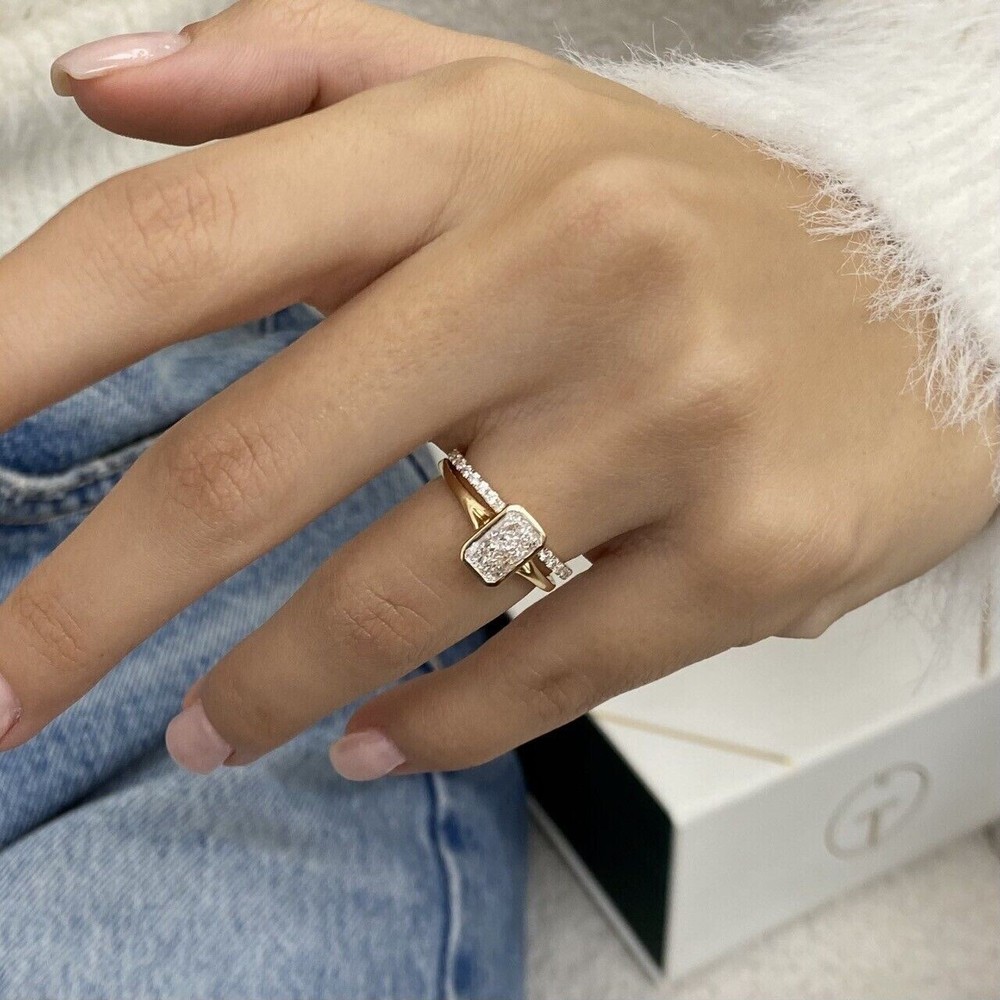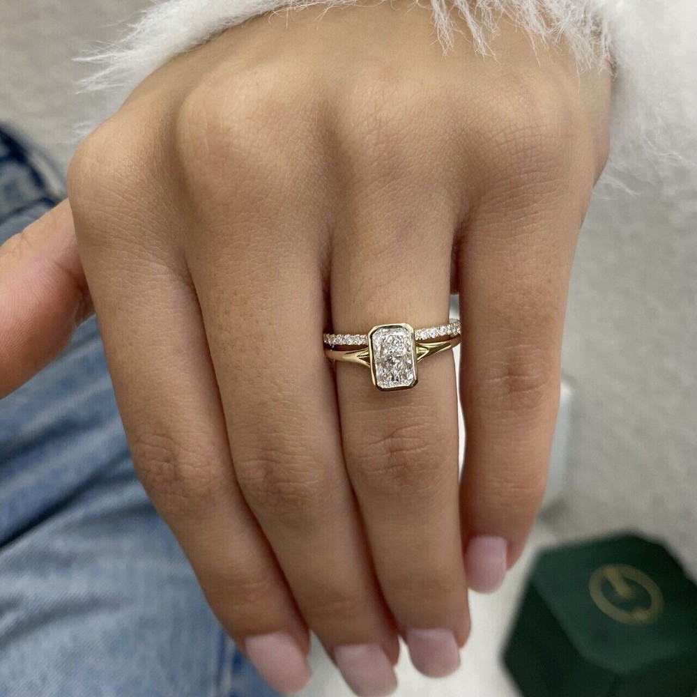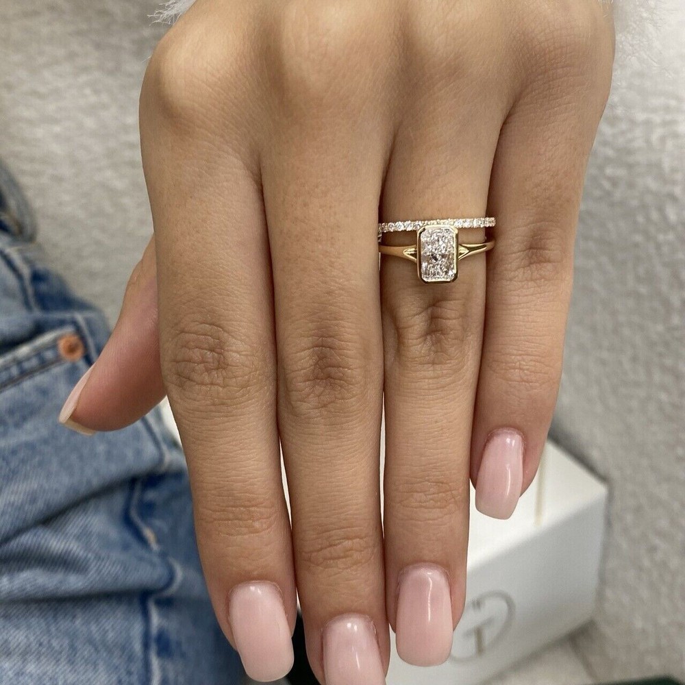Stunning Radiant Simulated Diamond Bridal Set Ring in 14k Yellow Gold Plated Band