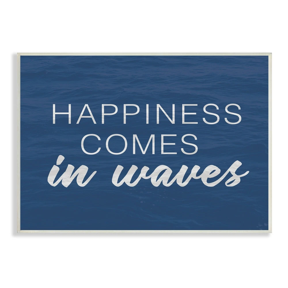Proudly made in the USA, all of All of our wall plaques start off as high quality lithograph prints that are then mounted on durable 0.5 inch thick MDF wood. Each piece is hand finished and comes with a fresh layer of foil on the sides to give it a crisp clean look. It arrives ready to hang with no installation required, and comes with sturdy clear corners to keep it from damaging in transit.Features:Wall Art is Ready to Hang - No Installation or Hardware Needed. For Easy Set Up Lean or Layer Artwork on Shelf or Against Wall.All of our wall plaques start off as high quality lithograph prints that are then mounted on durable 0.5 inch thick MDF wood. Each piece is hand finished and comes with a fresh layer of foil on the sides to give it a crisp clean look. Made In USA.Artwork Ideal for any Free Shipping Over $49.99* Details Stupell Inspirational Happiness Comes in Waves Blue Coastal Waves Wood Wall Art Product Description: Proudly made in the USA, all of All of our wall plaques start off as high quality lithograph prints that are then mounted on durable 0.5 inch thick MDF wood. Each piece is hand finished and comes with a fresh layer of foil on the sides to give it a crisp clean look. It arrives ready to hang with no installation required, and comes with sturdy clear corners to keep it from damaging in transit. Features: Wall Art is Ready to Hang - No Installation or Hardware Needed. For Easy Set Up Lean or Layer Artwork on Shelf or Against Wall. All of our wall plaques start off as high quality lithograph prints that are then mounted on durable 0.5 inch thick MDF wood. Each piece is hand finished and comes with a fresh layer of foil on the sides to give it a crisp clean look. Made In USA. Artwork Ideal for any Living Room, Den, Entryway, Bedroom, Office, Kitchen or Bathroom. Design by Lux + Me Designs