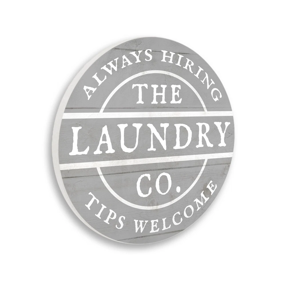 Proudly made in the USA, all of our wall plaques start off as high quality lithograph prints that are then mounted on durable 0.5 inch thick MDF wood. Each piece is hand finished and comes with a fresh layer of white foil on the sides to give it a crisp clean look. Art arrives ready to hang with no installation required.Features:Add a unique touch to any home with our Circular Shaped Wall Art. All of our wall plaques start off as high quality lithograph prints that are then mounted on durable 0.5 inch thick MDF wood. Each piece is hand finished and comes with a fresh layer of foil on the sides to give it a crisp clean look. Made In USA.Wall Art is Ready to Hang - No Installation or Hardware Needed. For Easy Set Up Use A Picture Stand to Lean or Layer Artwork on Shelf or Against Free Shipping Over $49.99* Details Stupell Rustic Laundry Co. Sign Tips Welcome Always Hiring, 12 x 12, Design By Product Description: Proudly made in the USA, all of our wall plaques start off as high quality lithograph prints that are then mounted on durable 0.5 inch thick MDF wood. Each piece is hand finished and comes with a fresh layer of white foil on the sides to give it a crisp clean look. Art arrives ready to hang with no installation required. Features: Add a unique touch to any home with our Circular Shaped Wall Art. All of our wall plaques start off as high quality lithograph prints that are then mounted on durable 0.5 inch thick MDF wood. Each piece is hand finished and comes with a fresh layer of foil on the sides to give it a crisp clean look. Made In USA. Wall Art is Ready to Hang - No Installation or Hardware Needed. For Easy Set Up Use A Picture Stand to Lean or Layer Artwork on Shelf or Against Wall. Artwork Ideal for any Living Room, Den, Entryway, Bedroom, Office, Kitchen or Bathroom. Design by Lil' Rue