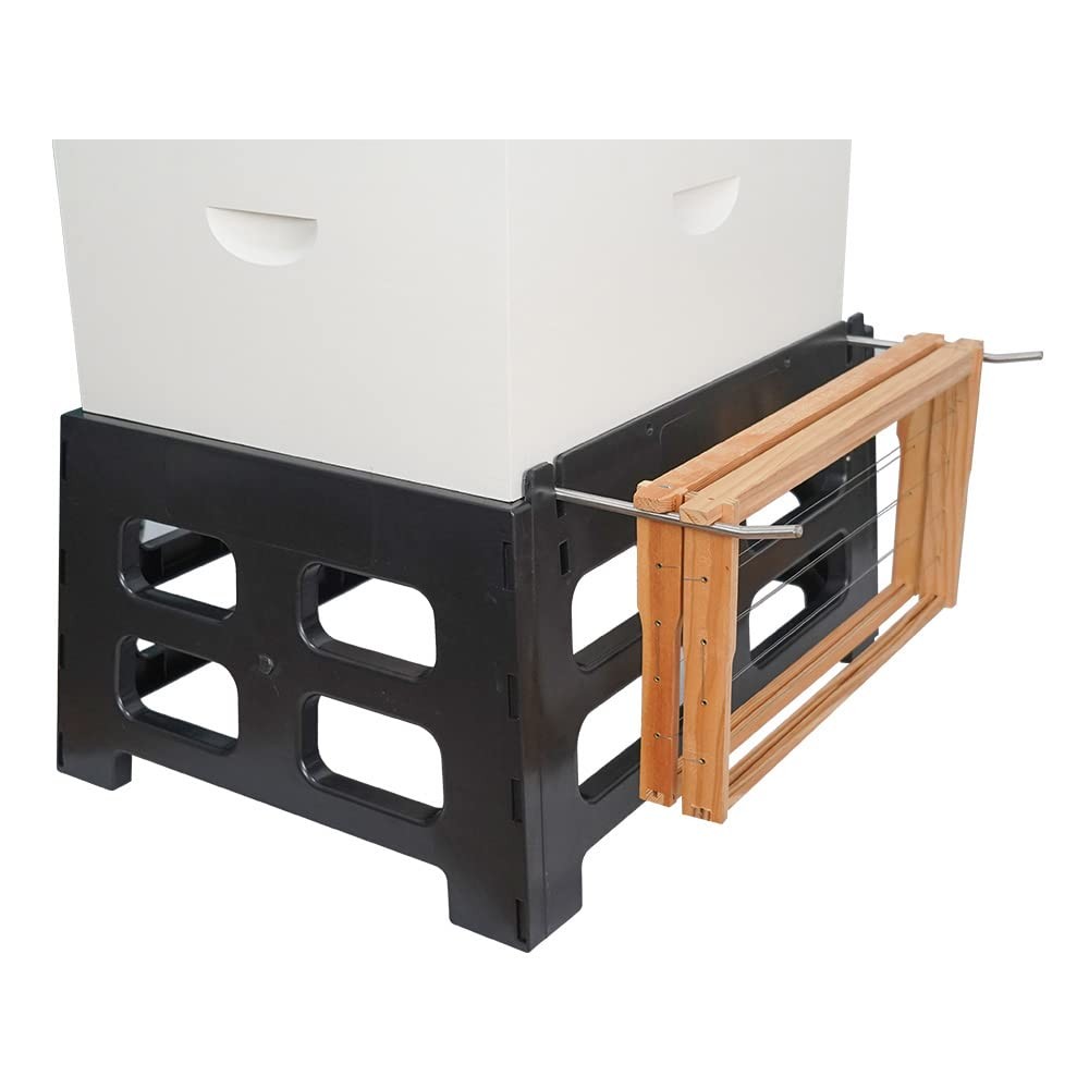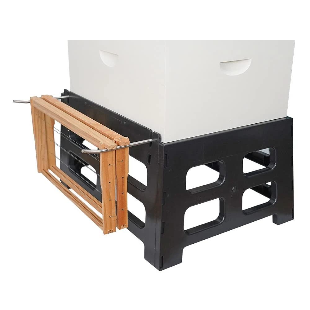 " Black Plastic Beehive Stand with Four Slides and Metal Support Bars for Durability and Stability A Pre-Built Beehive Stand! Beehive Stand will easily fit a standard 10 frame Langstroth or frame hives. It comes with lightweight and durable against elements and inexpensive expecially will not rust or rot as it comes with 100% recycled plastic materials. Beehive Stand comes with four sides slide in a compact fit for great strength and durability. In addition, metal support bars are included for even weight distribution. Advantages of using hive stands are: - Makes your hive inspections easier with less bending and lifting - Makes relocation of your hives much easier - Better ventilation, humidity, and temperature control - Prevents hive box wear and tare. HST-1 Black Plastic Beehive Stand STRENGTH AND DURABILITY - Has 4 Sides slide together to create a strength and durabilty. METAL FRAME REST - Metal rest helps distributing weight for convenient fram holder. Prevents hive box wear and tare Includes Four Slides and Metal Support Bars for Durability and Stability