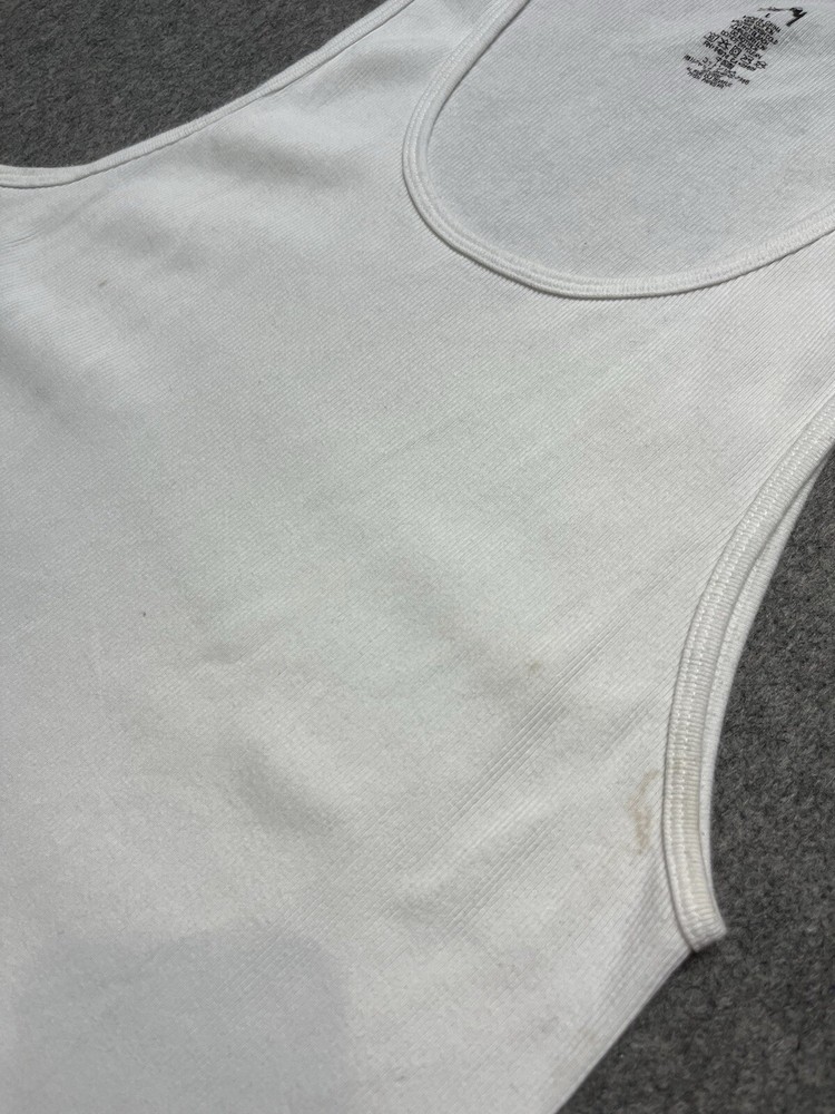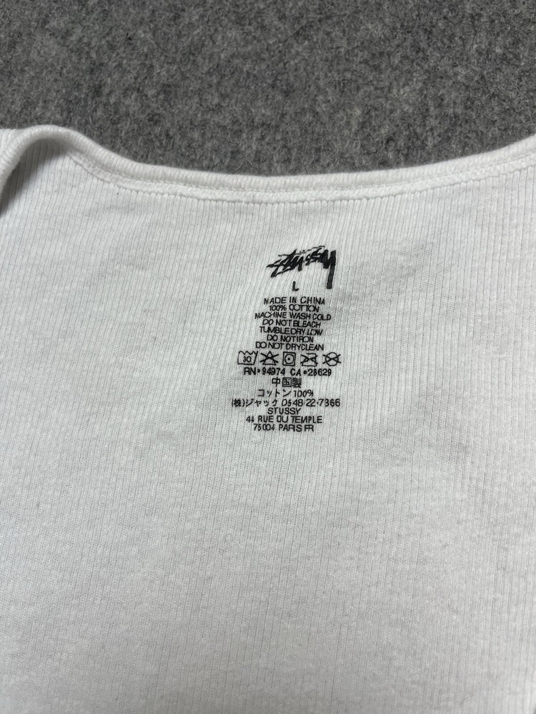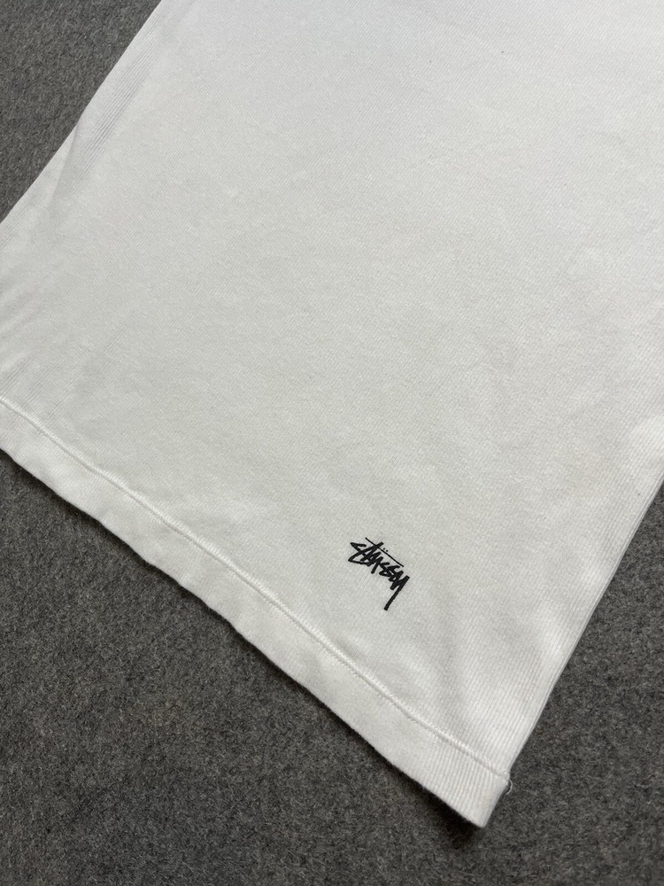 Type:T-ShirtSize:LTheme:Designer, Hip HopCountry/Region of Manufacture:MexicoBrand:StussyPattern:SolidMaterial:CottonFit:RegularVintage:NoColor:WhiteSize Type:RegularDepartment:MenSleeve Length:SleevelessFeatures:All Seasons