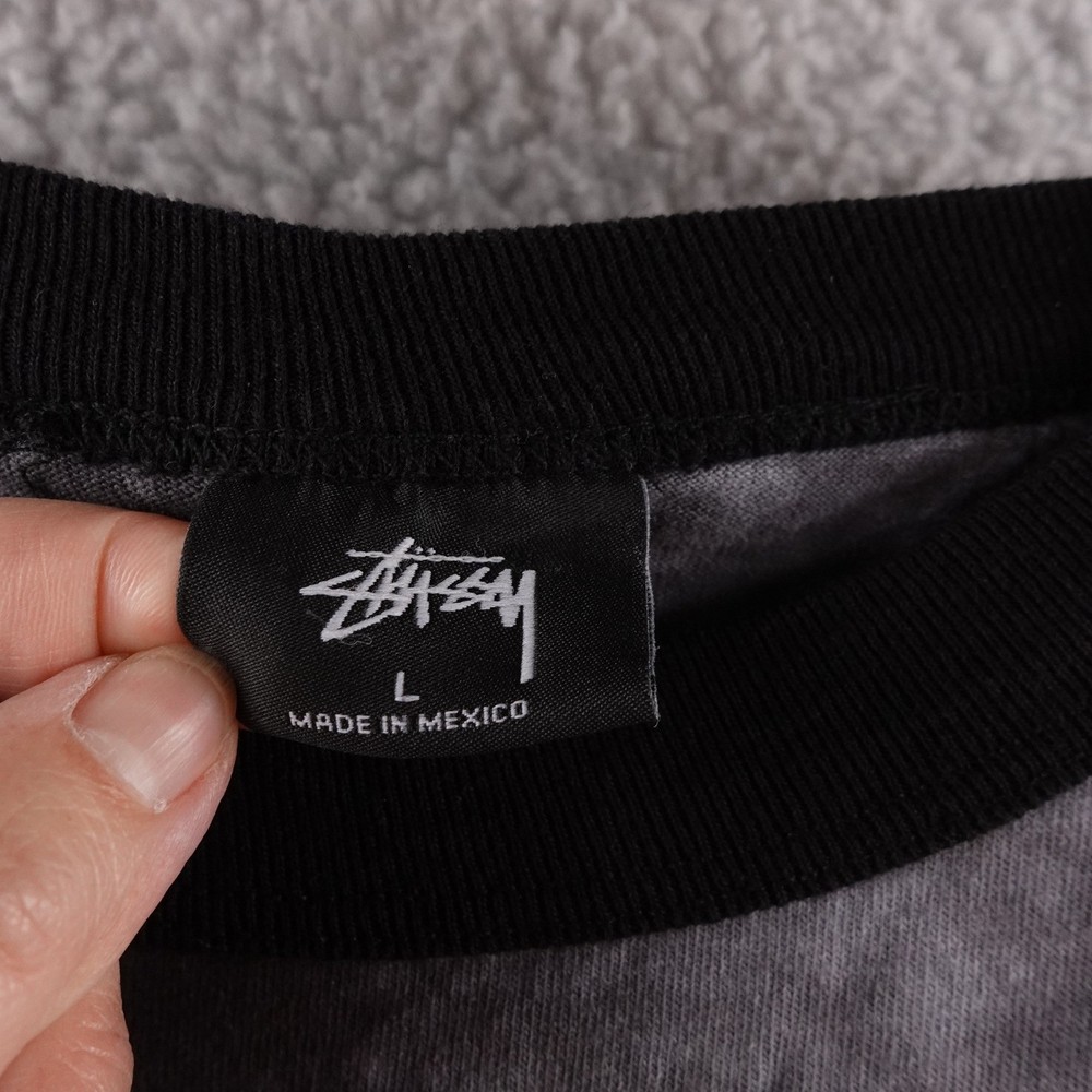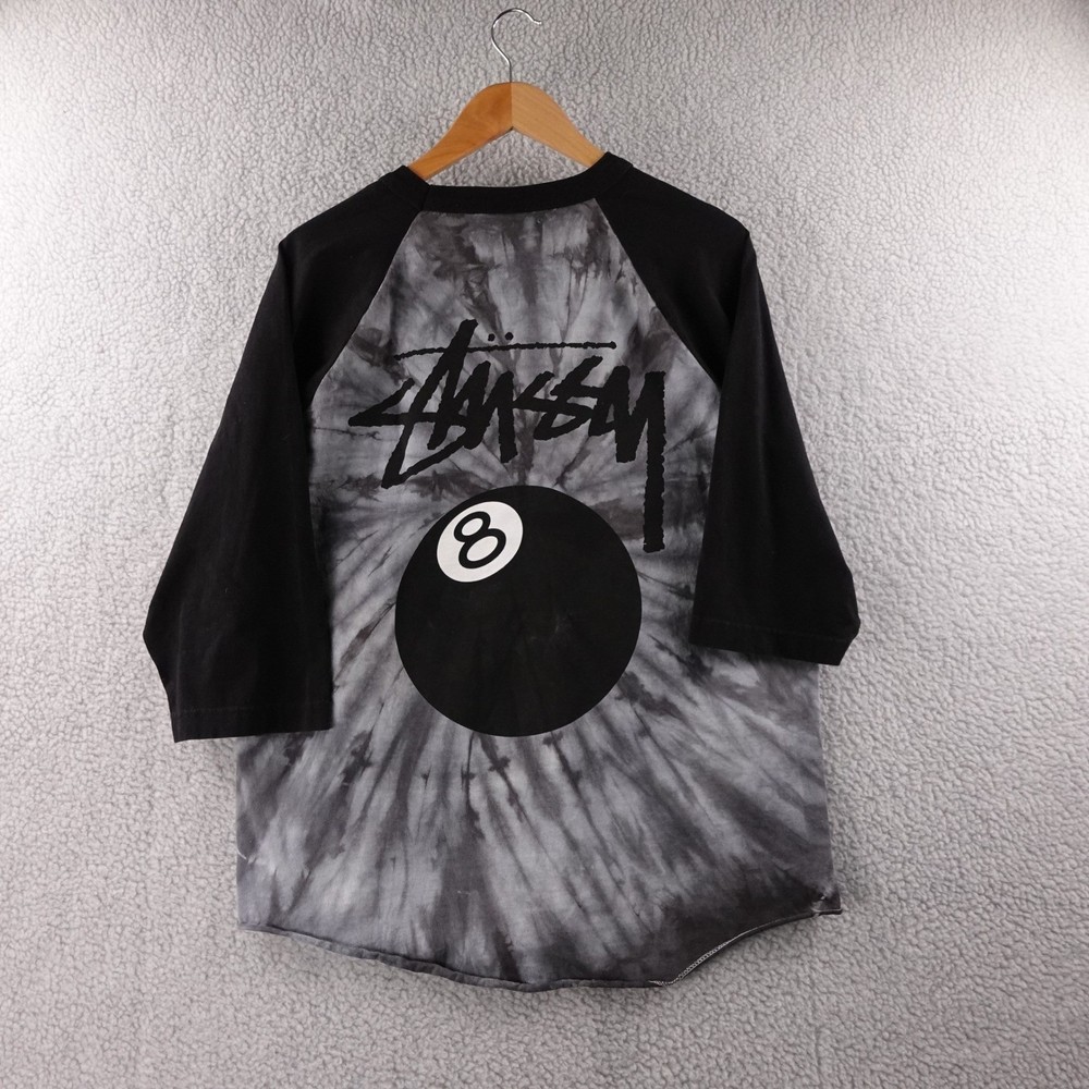 Own a piece of streetwear history with this iconic Stussy tie-dye baseball tee. The mesmerizing spiral tie-dye pattern in shades of grey evokes a retro vibe, perfectly complemented by the classic black 3/4 sleeves and bold Stussy logo with the signature 8-ball graphic. This tee feels as cool as it looks, ready to elevate your casual style. Perfect for concerts, weekend outings, or simply lounging with friends. Department: Unisex Adults Type: T-Shirt, T-Shirt Theme: Hip Hop, Designer Fit: Regular Sleeve Length: 3/4 Sleeve Pattern: Graphic Print Type: T-Shirt, T-Shirt Features: Contrasting Trim, Preshrunk Neckline: Crew Neck Fabric Type: Knit Material: Polyester Accents: Logo Year Manufactured: 2000-2009 Keywords: Stussy t shirt, 8 ball graphic, tie dye tee, baseball tee, raglan shirt, streetwear, skatewear, Y2K fashion, mens graphic tee, casual top, vintage style, hip hop clothing, bold print, 3/4 sleeve