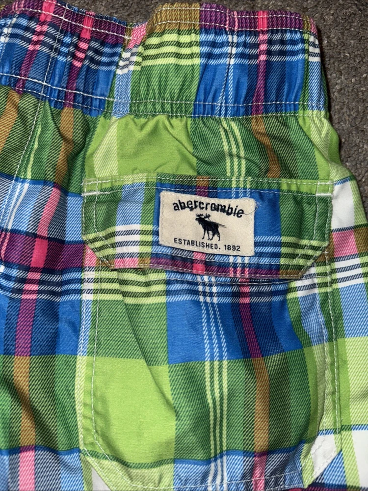 Abercrombie Kids Plaid Swim Trunks W Lg Moose Board Shorts Boy's Size L Preppy. Excellent gently used condition. Smoke free and pet free home