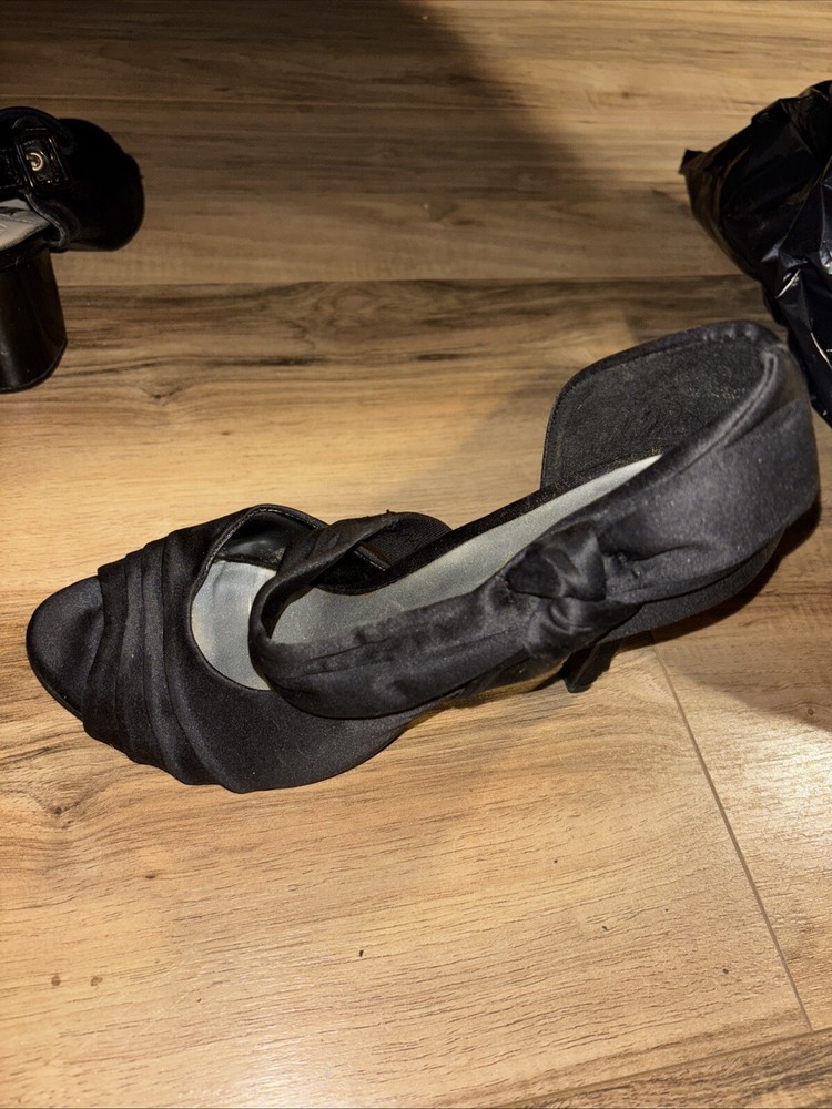 Elevate your style with these stunning black open-toe heels. Perfect for any formal occasion or party, these shoes add a touch of elegance to any outfit. The 7.5 US shoe size ensures a comfortable fit, while the unknown style and upper material add an element of mystery to your wardrobe. These shoes are customized with no vintage wear, making them perfect for any modern fashionista. Made in China, these heels are a must-have addition to any wardrobe. Has a few scuffs and have been worn but still is fair condition