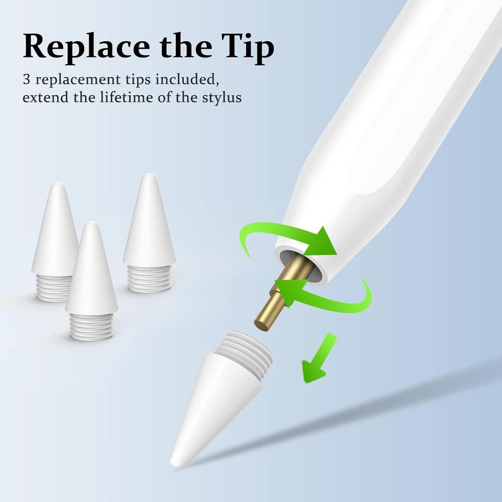 About this item [Precise and Sensitive]- The POM tip of these stylists are made of special material,which effectively improve the accuracy and sensitivity of tablet stylus pen writing. The nib of this pencil is smooth and wear-resistant,which can prevent damage to the screen,provide better accuracy and compatibility without delays and disconnections,allowing you to create with maximum precision at all times. Additionally,the pen for iphone comes with 1 spare nibs to extend the apple pens lifespan. [Intelligent Design]-The active stylus pen for ipad no need for drivers or bluetooth setting.Just double tap the pen cap and then start to use,create anything without limitation.The iphone pencil stylus can also be used as a useful gift for your family/friends around you who love to create.Our fine point stylus is equipped with smart energy-saving features, automatically switching to "sleep mode" after 5 minutes of inactivity to conserve power and avoid unnecessary battery consumption. [Magnetic Adsorption & Fast Charging]- The magnetic design,keep their lapiz para ipad close at hand and prevent it from getting lost, more portable and more easier to organize.Please note: Devices that support magnetic adsorption function: iPad Pro12.9" (third/fourth/fifth generation); iPad Pro11"; iPad air4; iPad mini6.The pen fully charged in just 60-80 minutes and provide up to 10 hours of active use on a single charge. Once the indicator light turns on,the ipad pro pencil is active. [Widely Compatible]- Our rechargeable apple stylus for ipad is compatible with almost all touch screen devices,including popular Apple products like iPad /Mini/Pro/and iPhone, as well as other smartphones and tablets (iOS/ Android) devices.It's good for writing,drawing and note-taking.This tablet pencil may not be compatible with laptops running on Windows systems, due to varying software and hardware configurations. [After-Sales Service]- Here are some helpful tips: ①Make sure the drawing stylus has enough electricity. ②The low-quality screen protector results in bad electric conductivity.③The apple ipad pen does not support palm rejection④If your device was previously connected to an Pencil via bluetooth, please forget the encil on bluetooth and turn off bluetooth to use our ipad pens.Our cheap styluses support 1-year product warranty