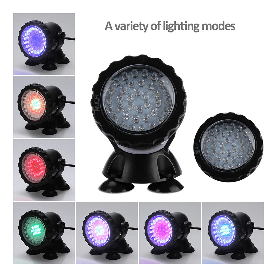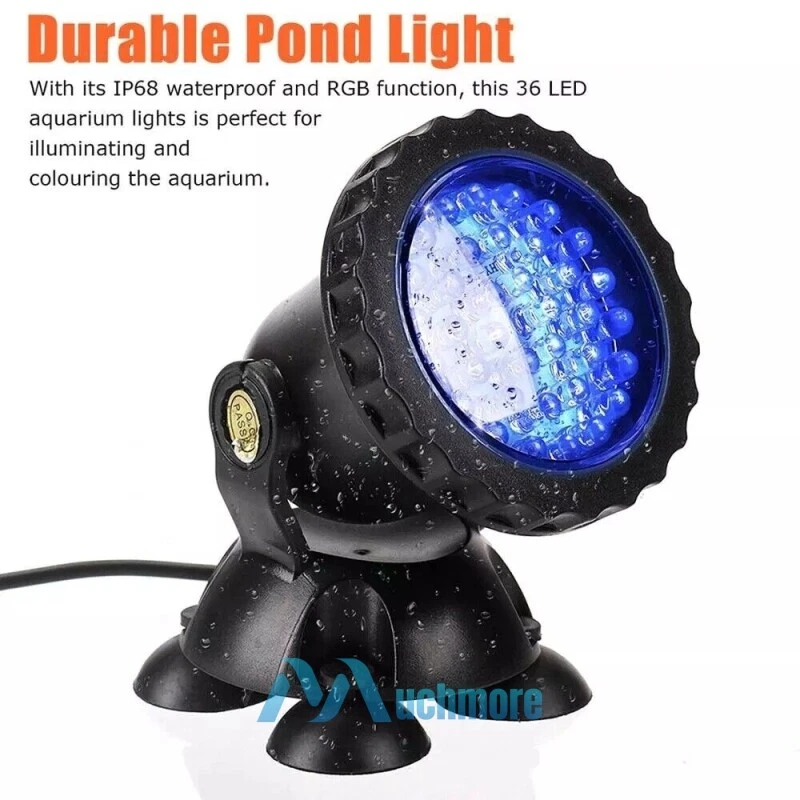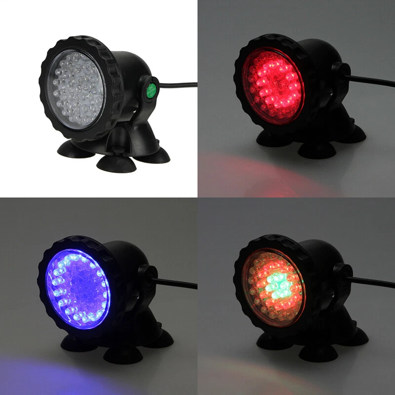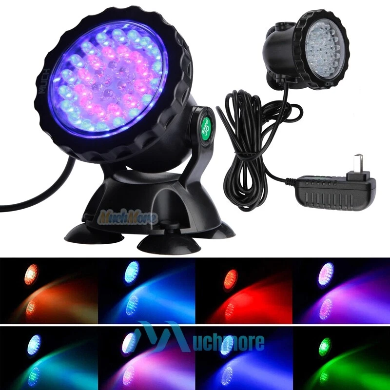 Submersible 36 LED RGB Pond Spot Lights Underwater Fountain Fish Tank Decor Lamp Product Description Submersible 36 LED RGB Pond Spot Lights Underwater Fountain Fish Tank Decor Lamp 100% Brand New & Excellent quality Free & fast shipping, with tracking number provided Features: * 4 Suction Cups * Fully waterproof, IP68 * Adopt supper bright LED lamp, high luminous efficiency * Full adjustable 180 degree joint. * 36 LED light bulbs, 7 patterns change in every 1-2 seconds. * Plug in wall transformer,easy to operate * Powerful sucking cup, convenient and substantial * Rubber protective cover to prevent collision and damage * Apply to fish tanks, cisterns, rockers pet cages etc Specifications: Waterproof: IP68 Item Color : Black Power: 2.5W Numbers of LED: 36 LED Type: straw hat LED Plug: US(plug cable length 0.5m) Power Cable total length: approx. 2.5m Product Size: 10*7cm Input:AC100-240V 50/60Hz Output: 12V, 0.5A Package includes: 1 x 36 LED Underwater Spot Light 1 x Power plug 1 x User Manual Payment Shipment Return Feedback Contact us Payment * We Accept Payment via PAYPAL ONLY . * Payment Must be Made within 4 Days of Auction Closing. * Non-Payment may Result in a UPI (Unpaid Item) being Put on Your Account. eBay will Automatically Close Your Account if You Accumulate 4 UPI's total. * Please List Your Special Requests ( Color, Size, Packages, etc. ) in the PAYPAL NOTES SECTION when you make payment. Shipment * Shipping will be handled in 24 business hours after payment got. Ship to PayPal Address only , please confirm it before paying. * Please leave your phone number in the address in case there is an address problem. Return * Returns and Exchange accepted within 60 Days. * Refund will be given as Money Back. * Free Return shipping. * Before you return the defective item,please email us for the RMA, and we will reply you in 24 hours in working days. If you do not get reply please check if your mail box has refused our reply or not, then send to us again, thanks! Feedback If you are satisfied with the transaction please remember to leave us a positive feedback (5-Star) will be much appreciated. Please DO remember to contact us before leaving the neutral (3 stars) , negative feedback (1-2 stars) or opening a case/dispute if any problem caused by the item . Normally your email would get replied within 24 hours on working day and your issue would be followed up carefully until we've reached a consensus! We will try our best to solve the problem and leave you a happy shopping mood here. Thank you! We are not only selling good items, but also selling with excellent after-sale service and a strong sense of responsibility. We will always try our best to find you a satisfactory solution if any problem takes place! Contact us Email muchbuy-outlet at Paypal registered email or ebay message.